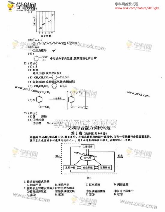 2013年福建高考文综真题