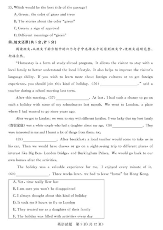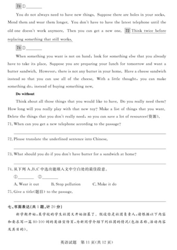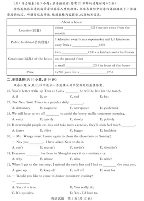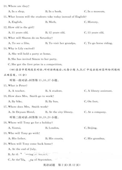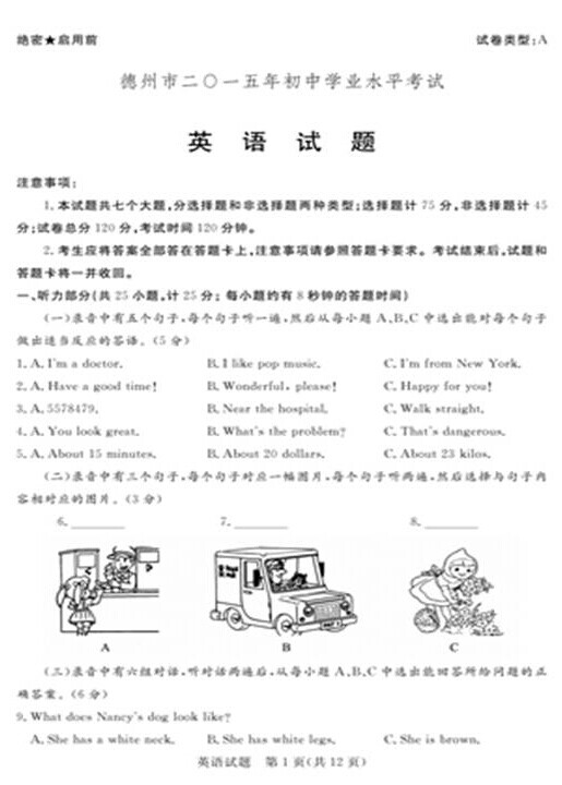 2015年山东德州中考英语真题(已公布)
