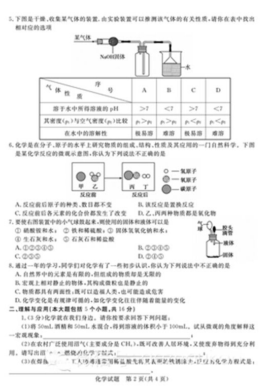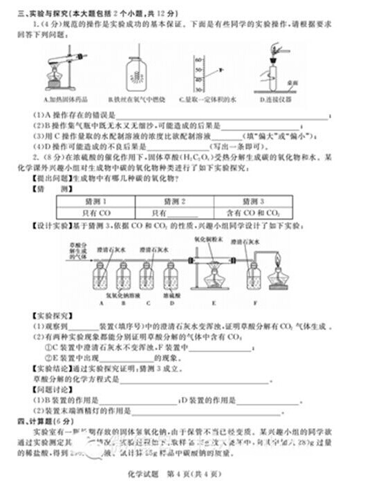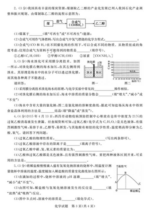 2015年山东德州中考化学真题(已公布)