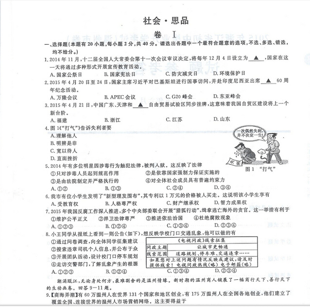 2023年浙江温州中考历史与社会.道德与法治试题及答案