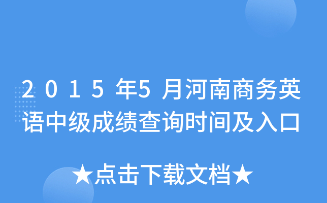| 2015年5月河南商务英语成绩查询时间及入口(中级) | |