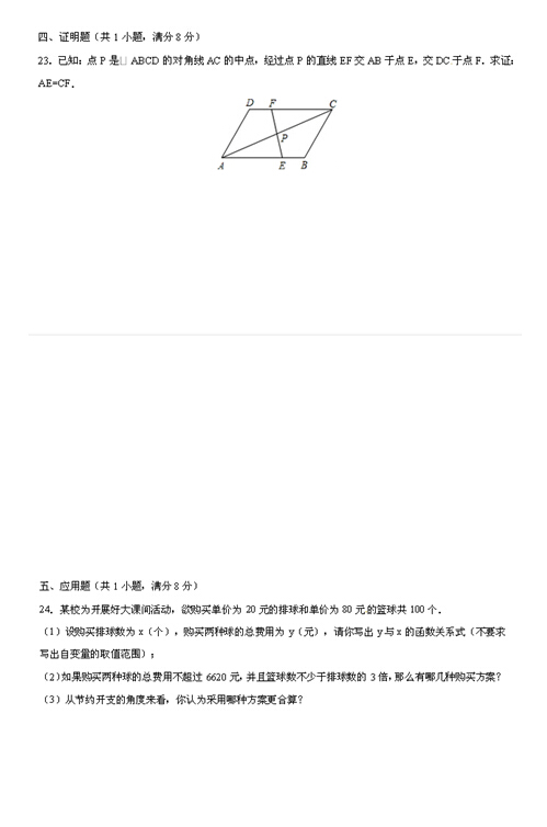 2024年湖南郴州中考数学试题及答案