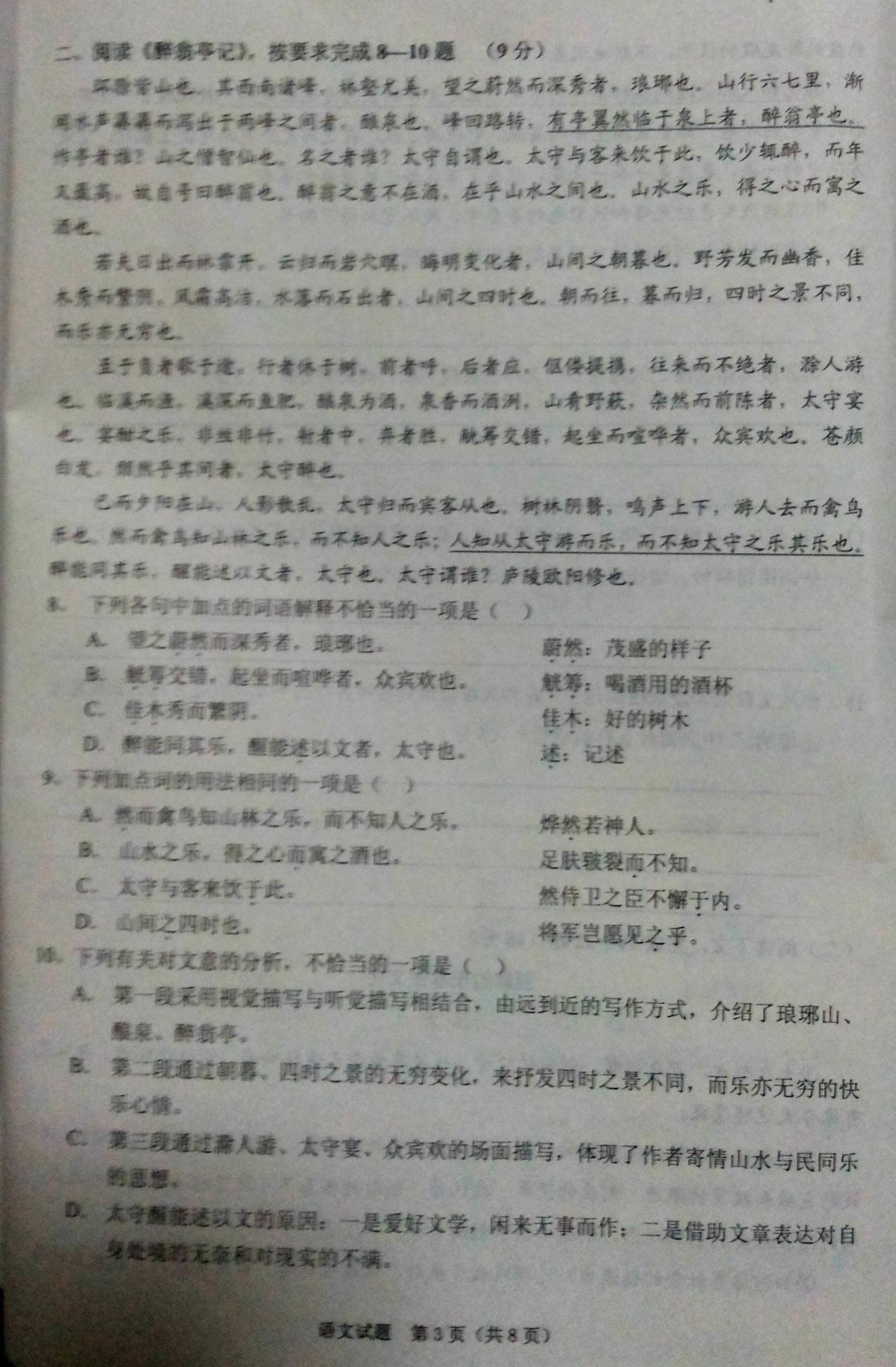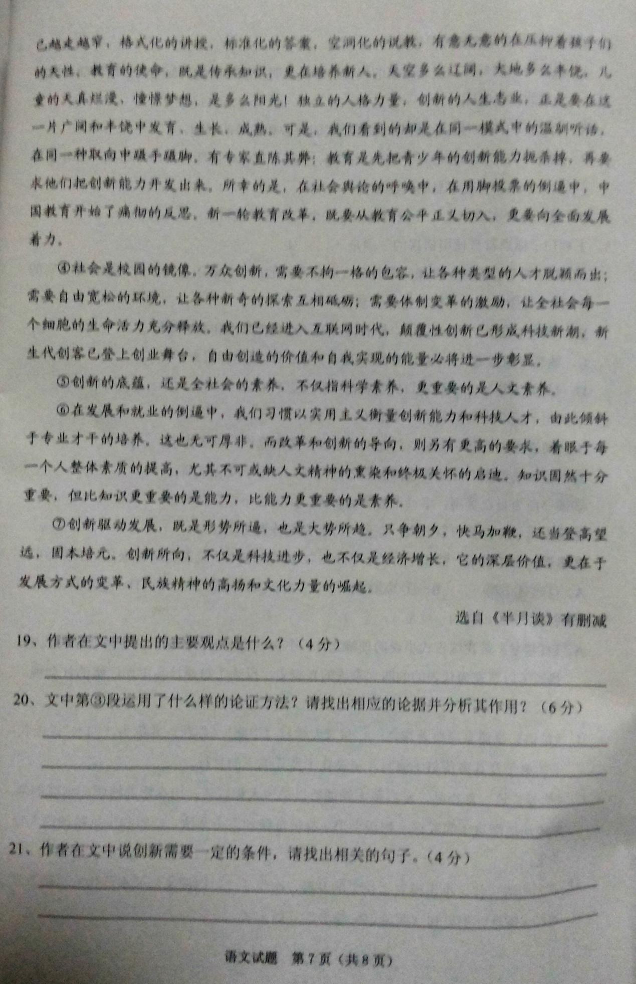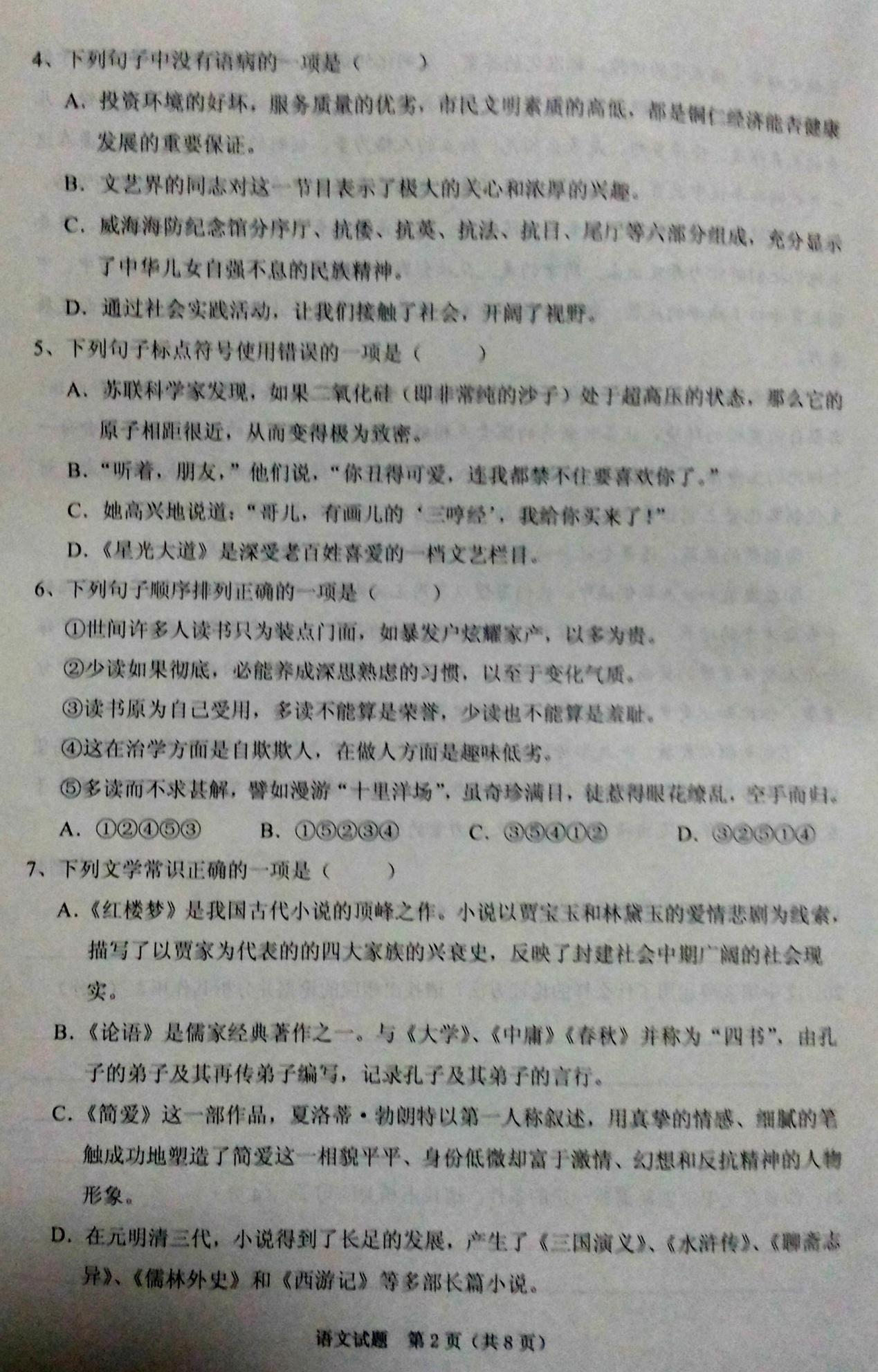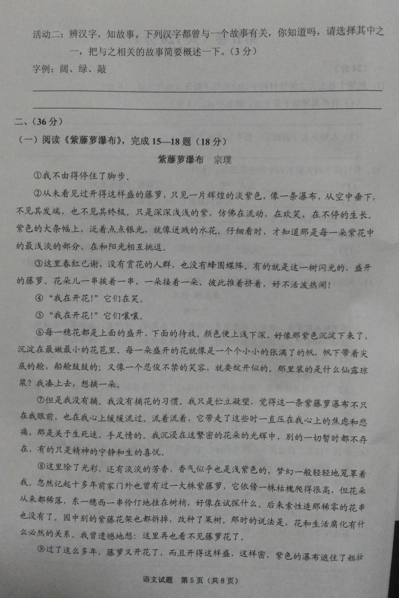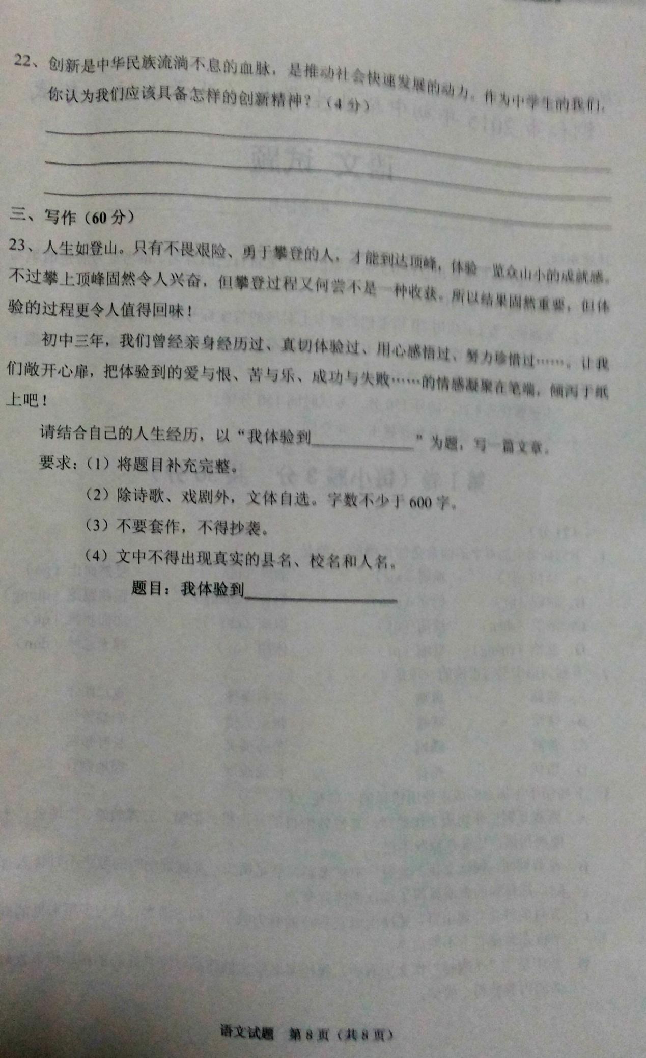 2015年贵州铜仁中考语文真题及答案(已公布)