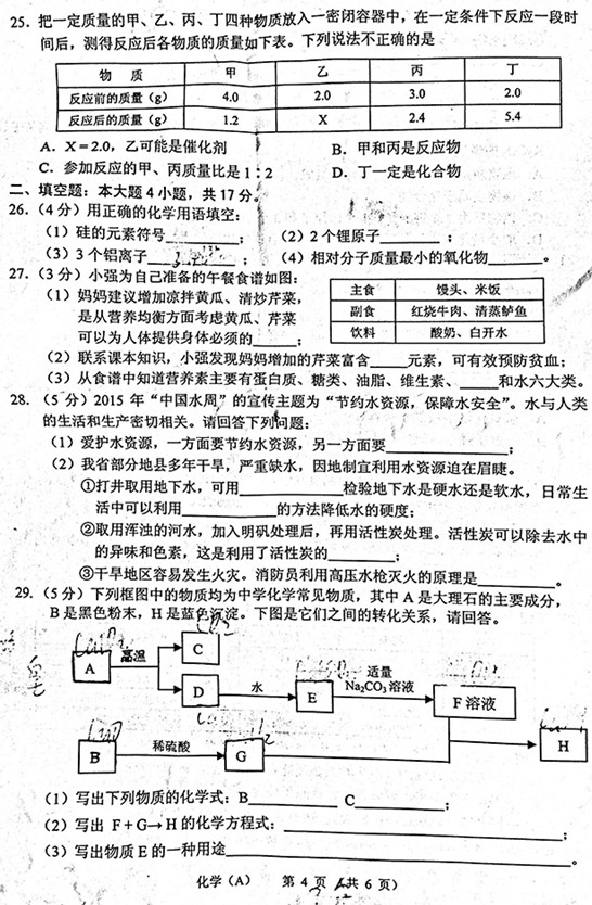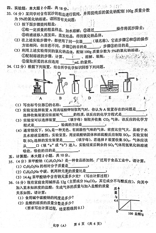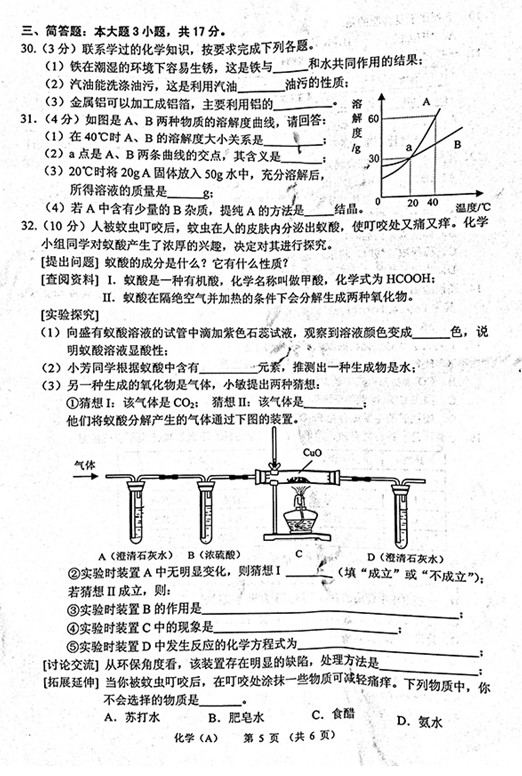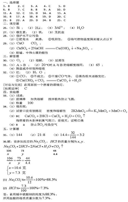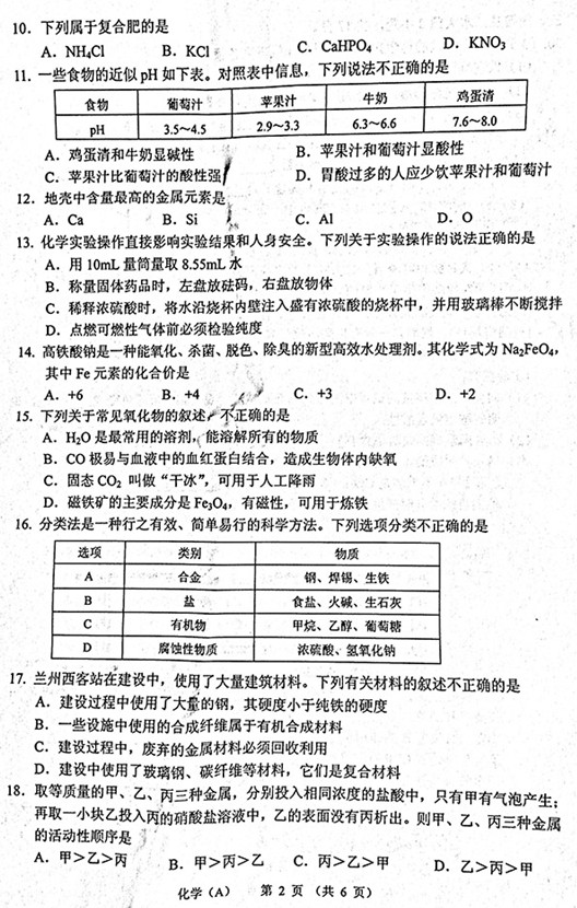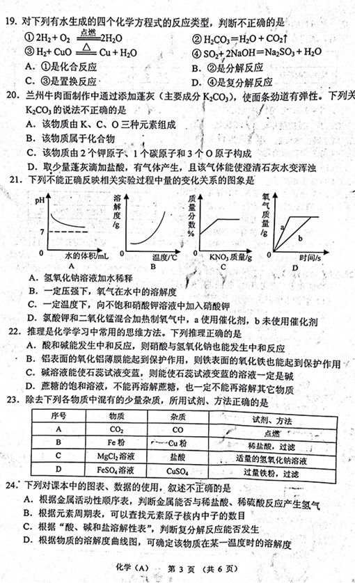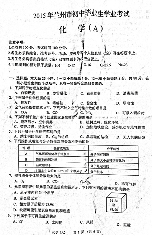 2015年甘肃兰州中考化学真题及答案(已公布)
