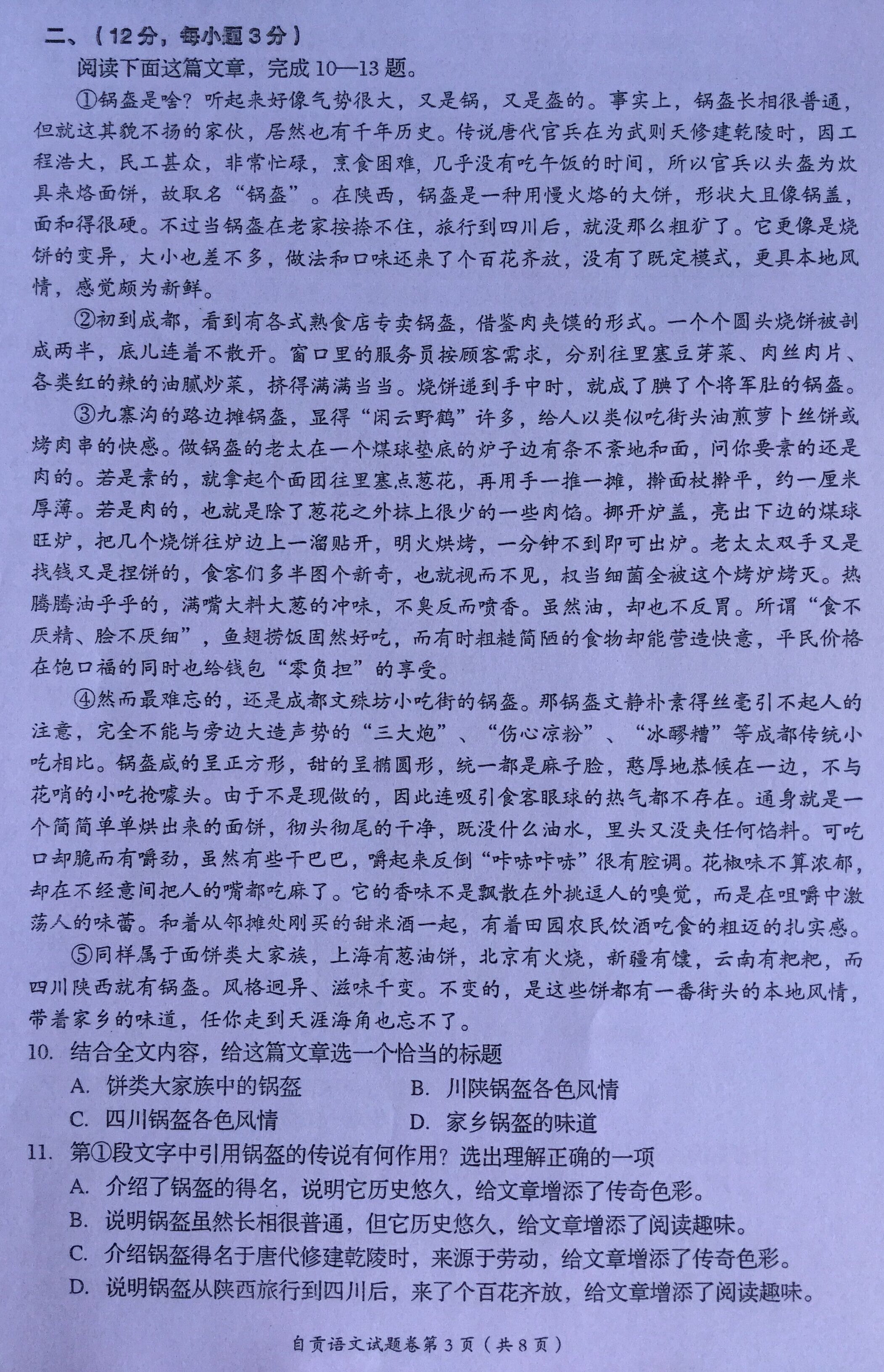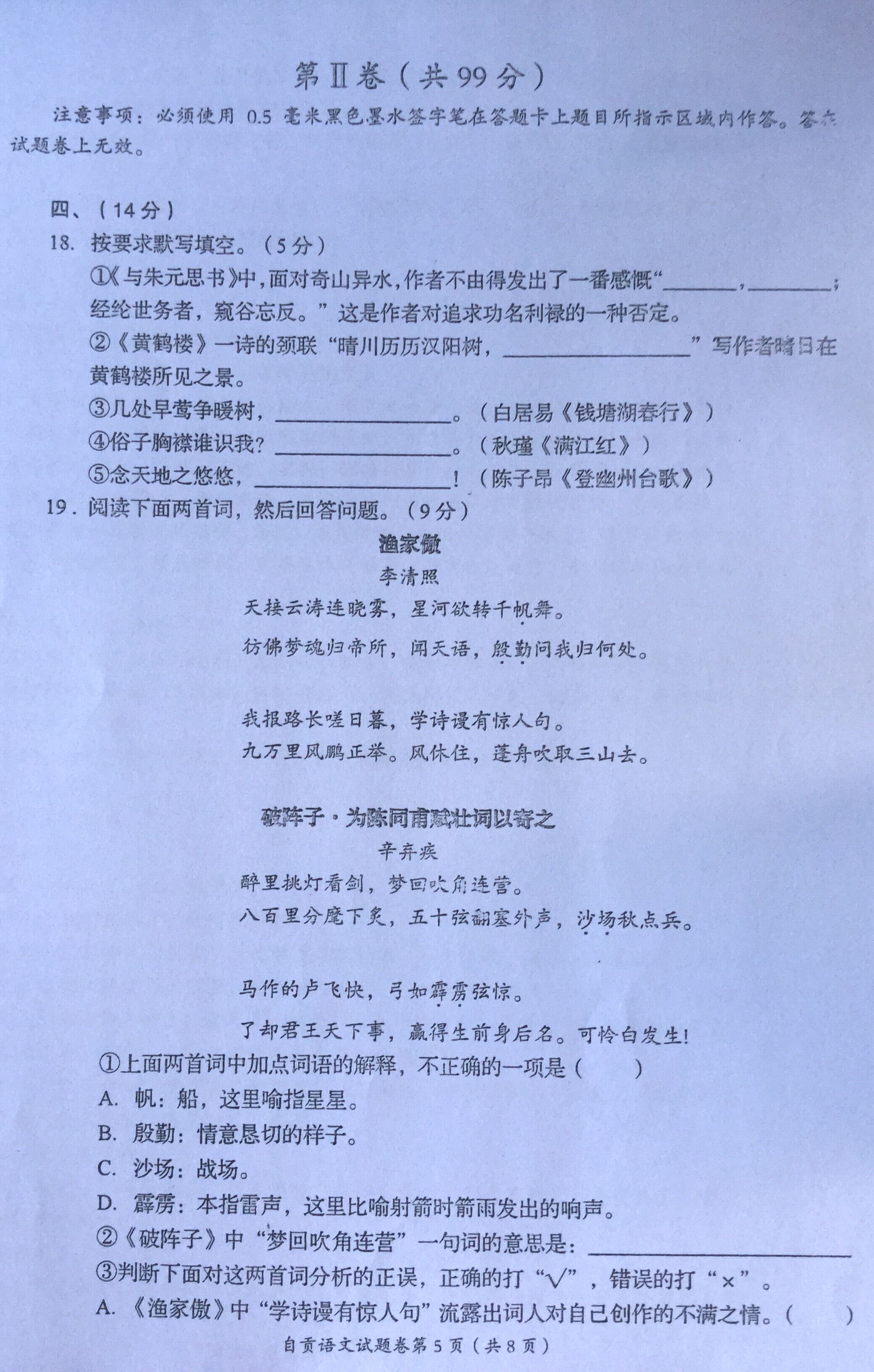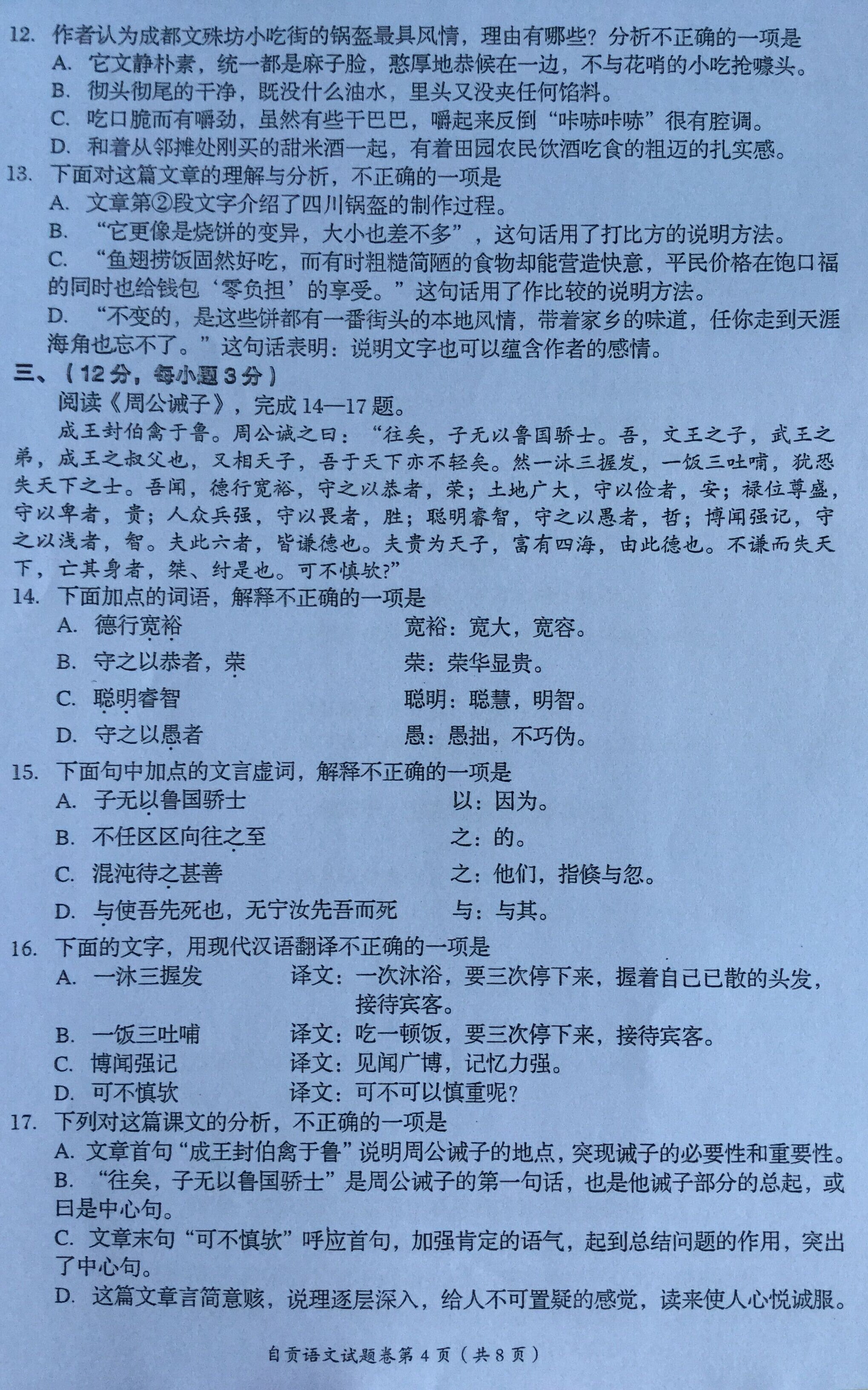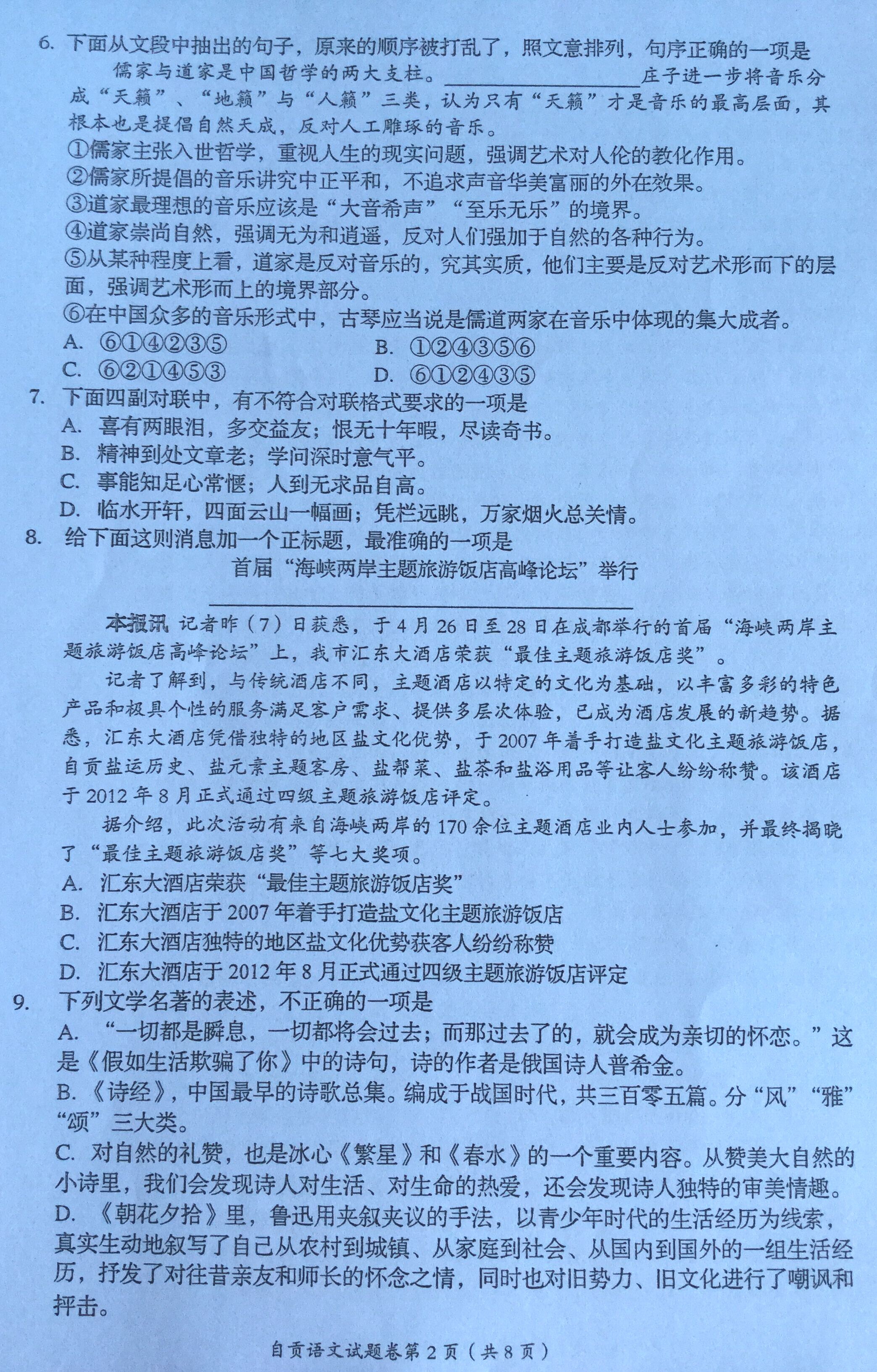 2015年四川自贡中考语文真题(已公布)