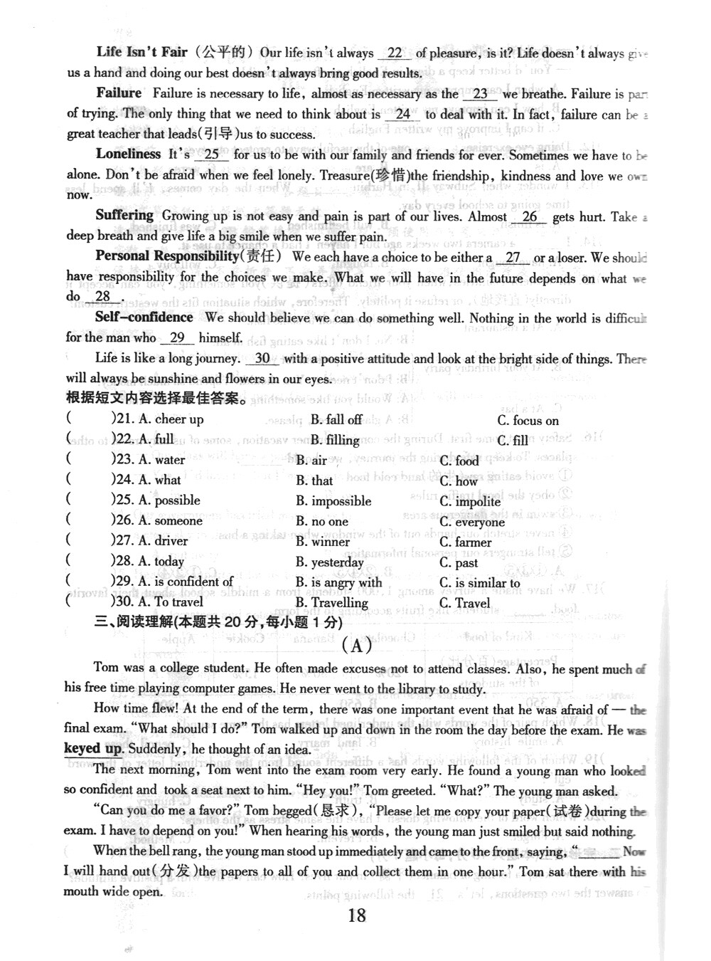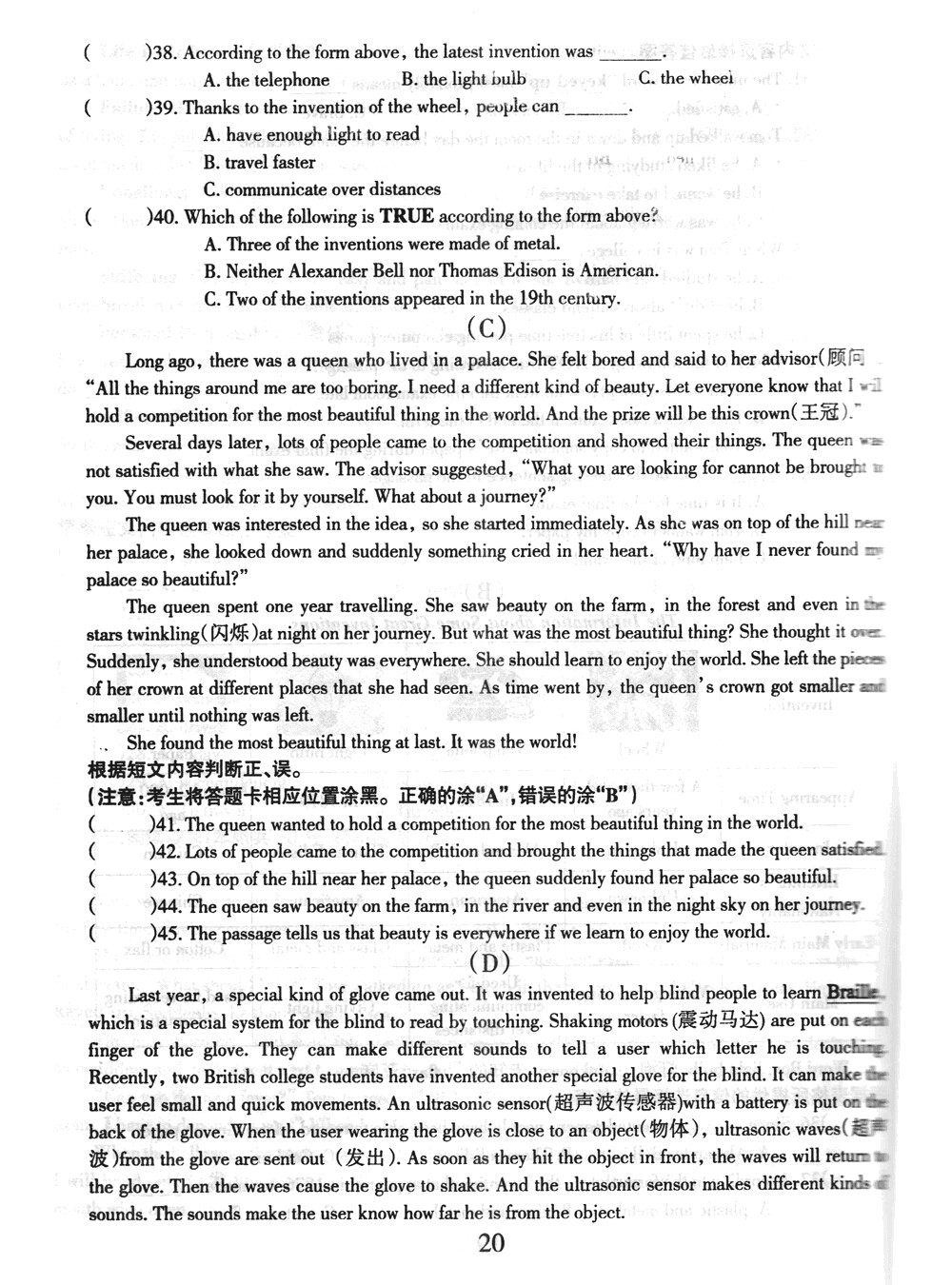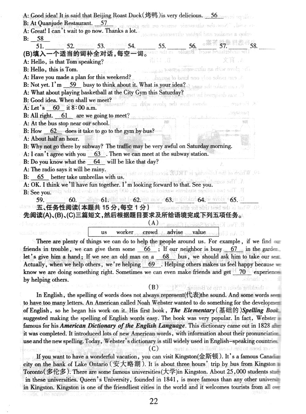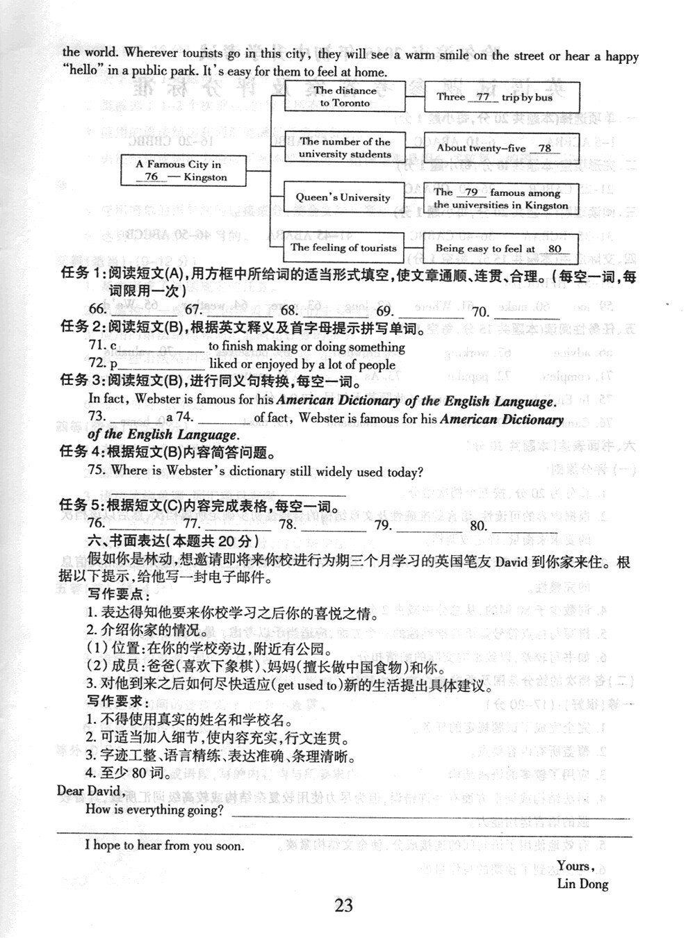2015年黑龙江哈尔滨中考英语试卷及答案(完整版)