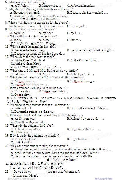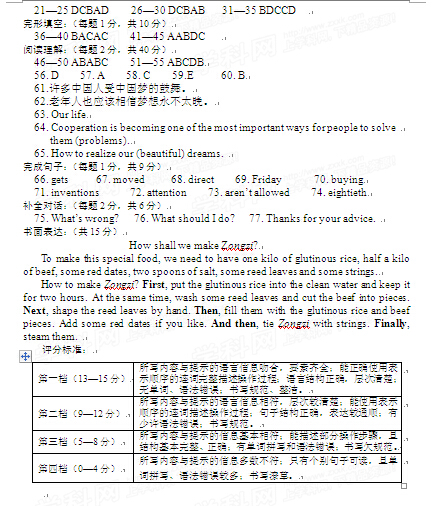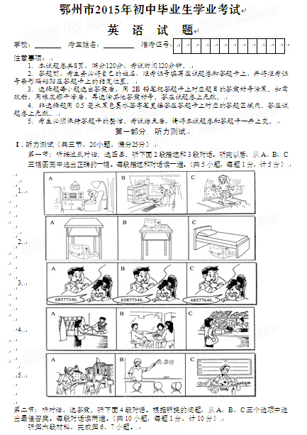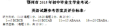 2015年湖北鄂州中考英语真题及答案(完整版)