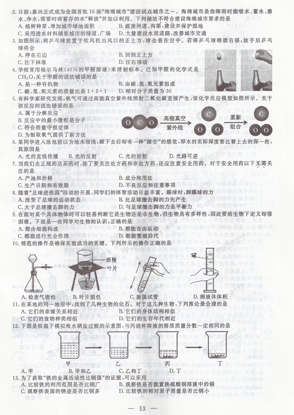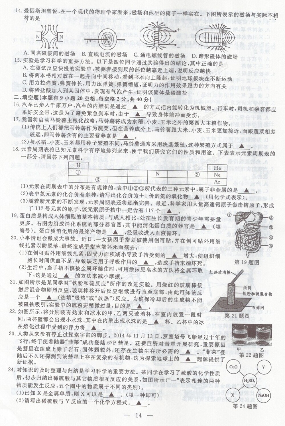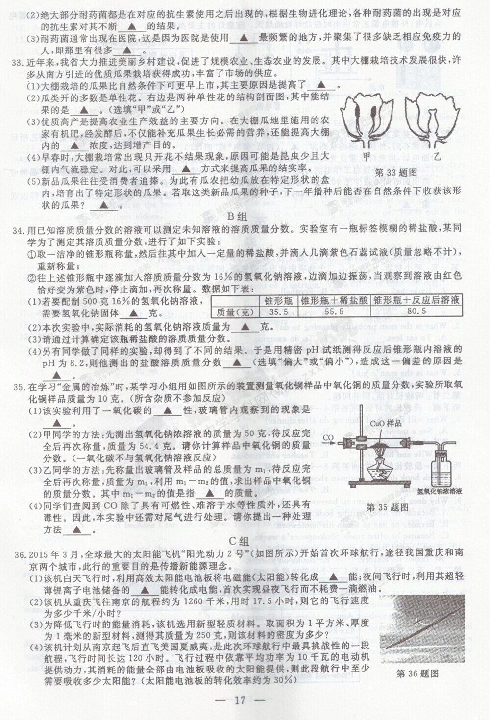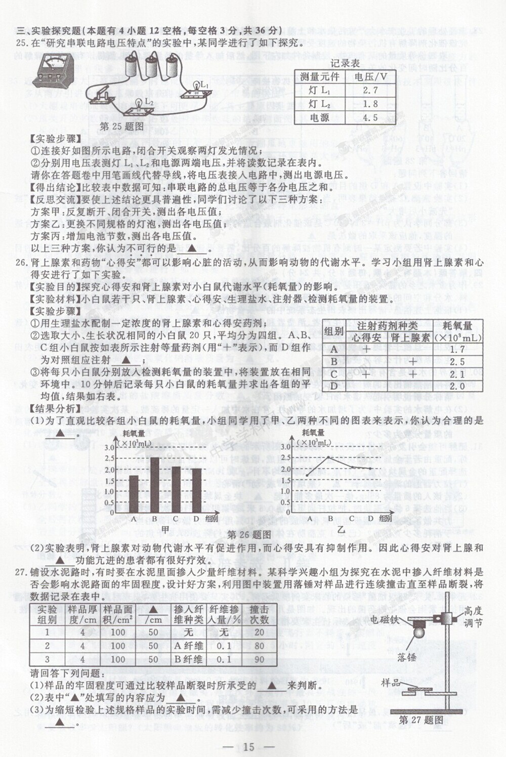 2015年浙江嘉兴中考化学试卷及答案(完整版)