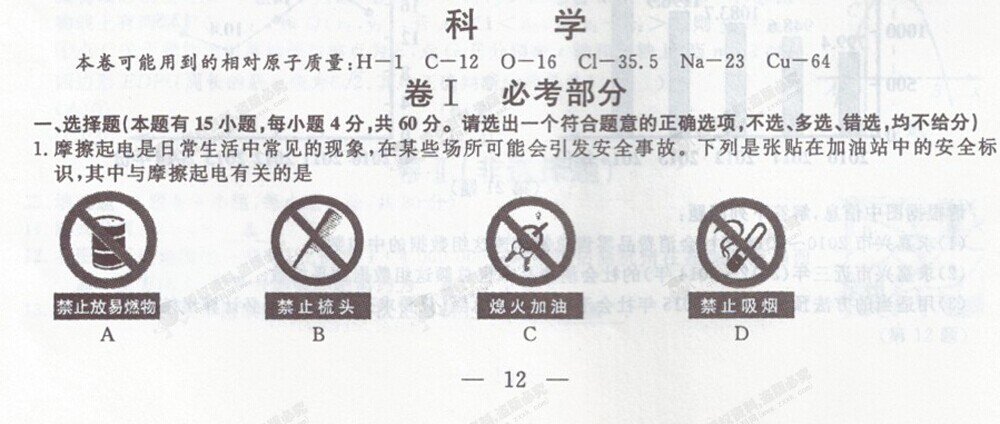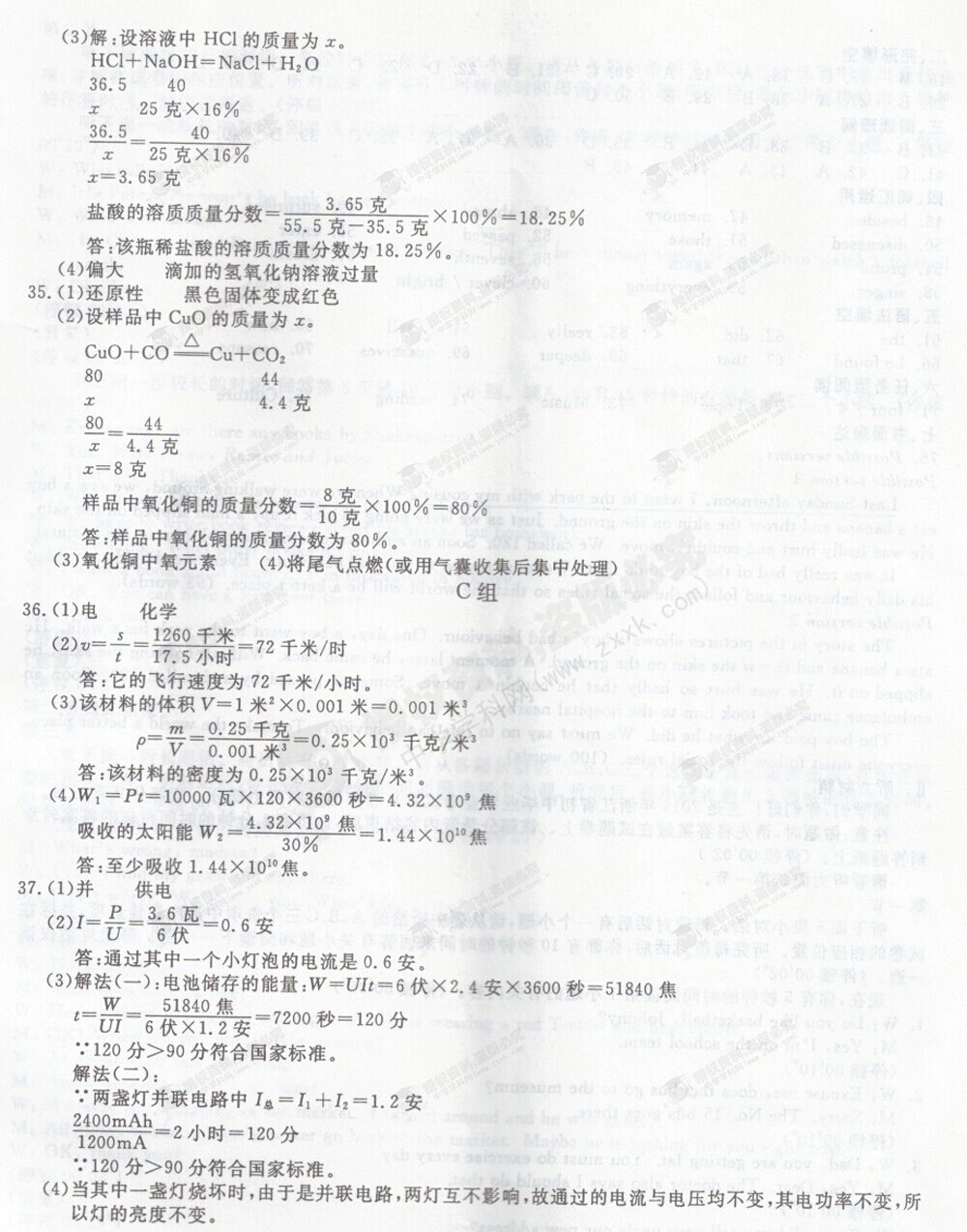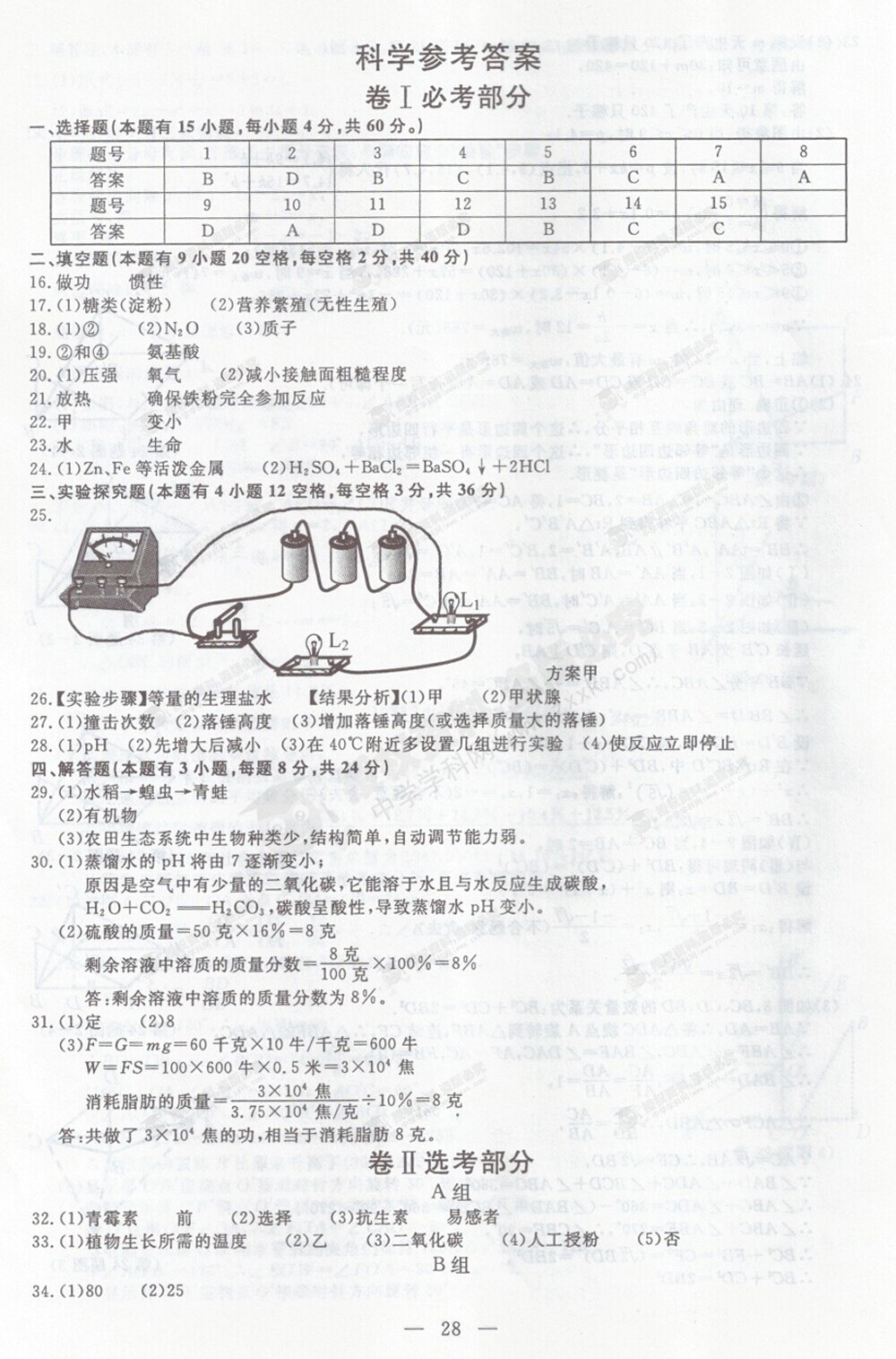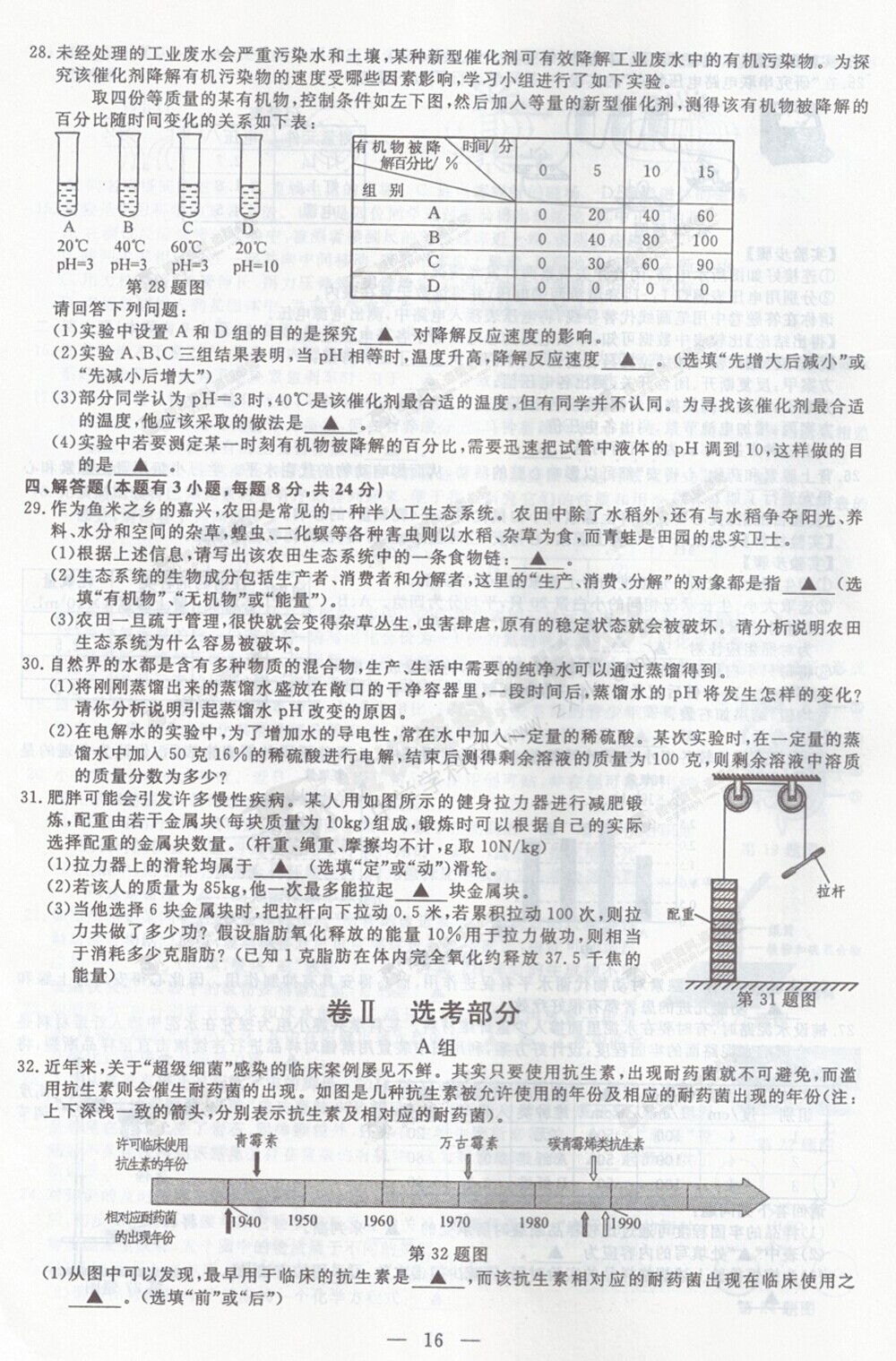 2015年浙江嘉兴中考化学试卷及答案(完整版)