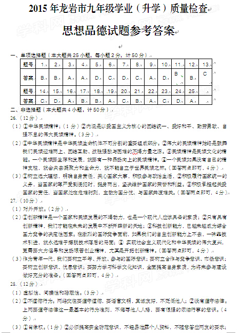 2025年福建龙岩中考体育与健康基本知识真题及答案