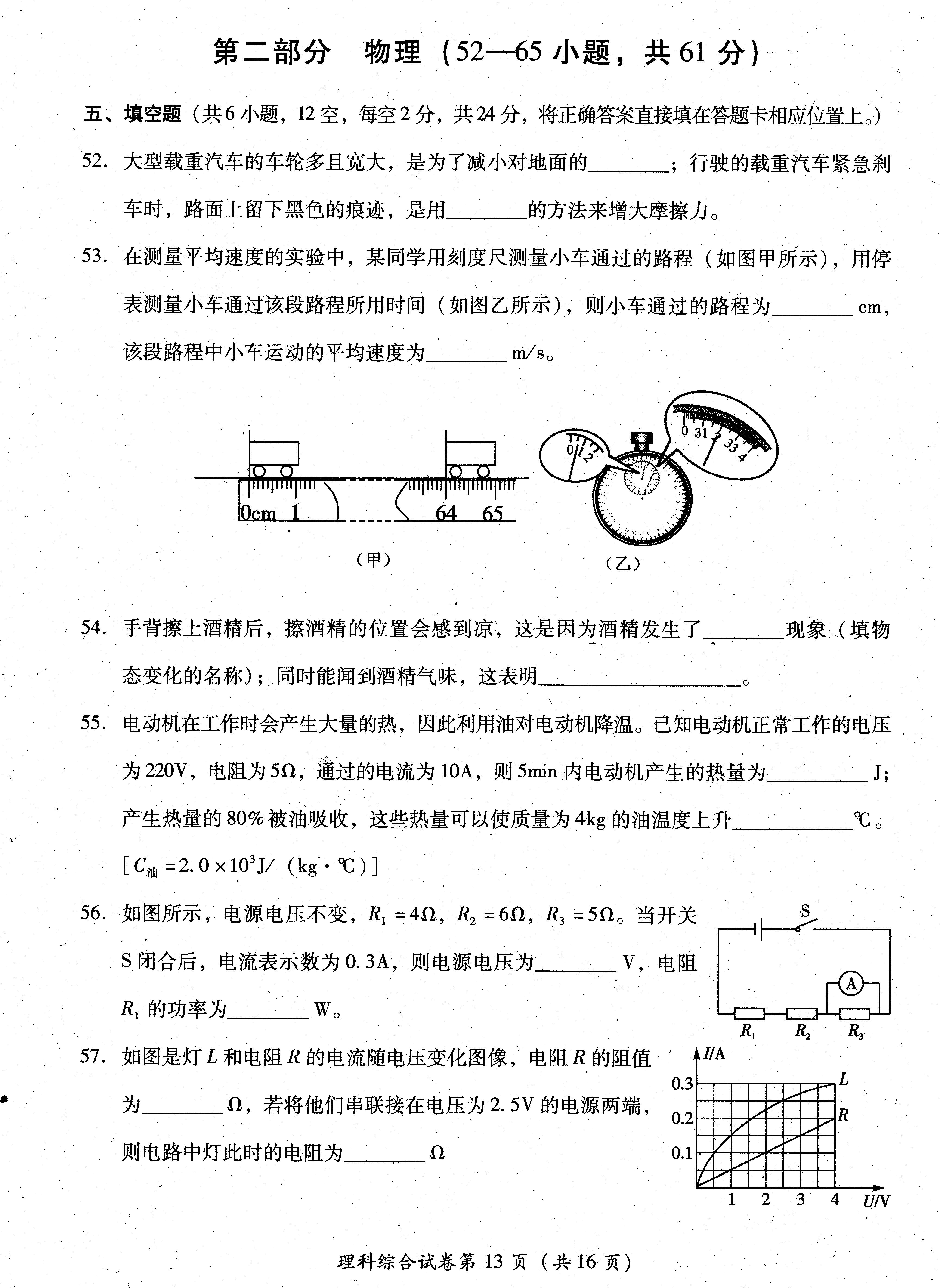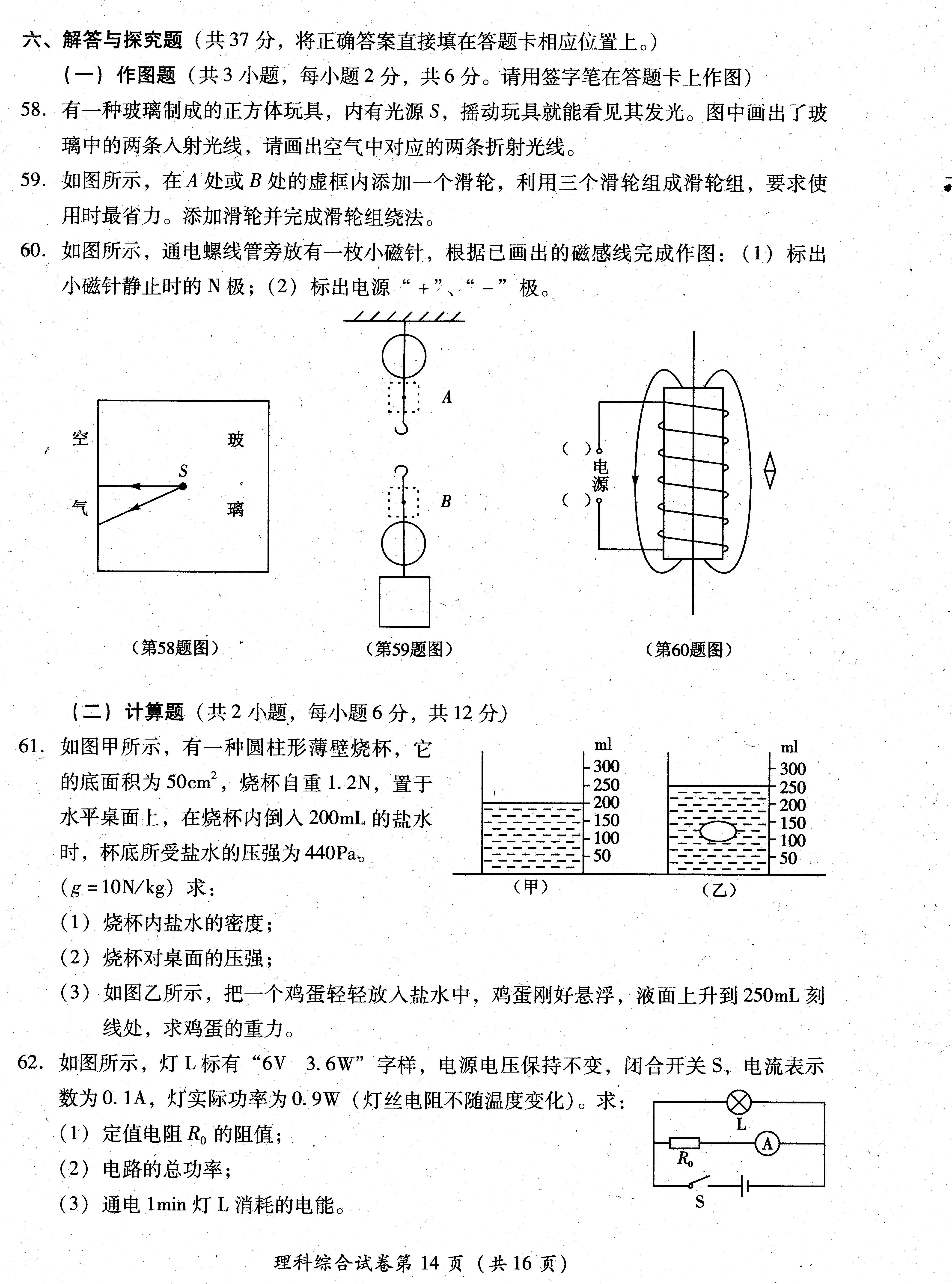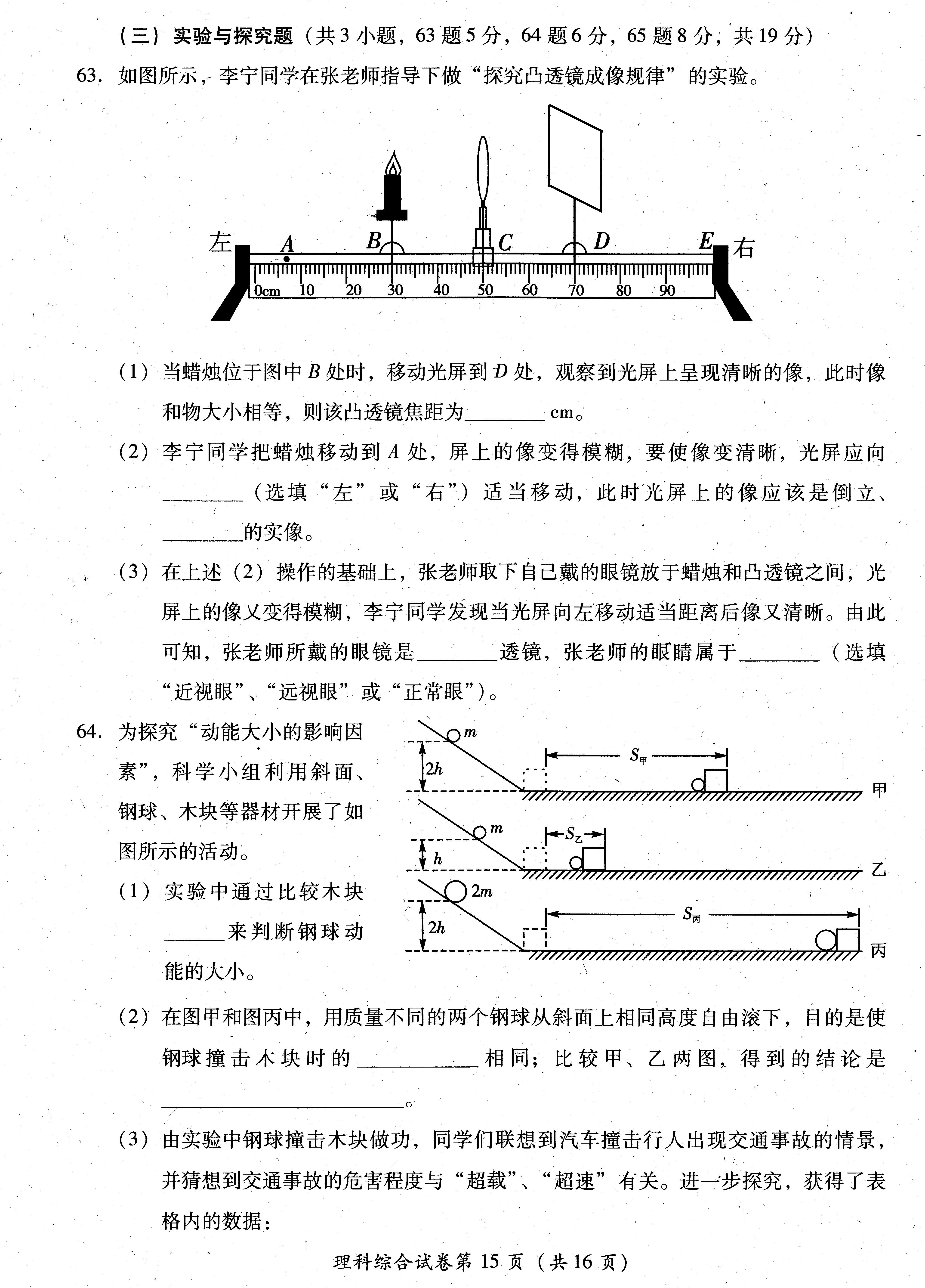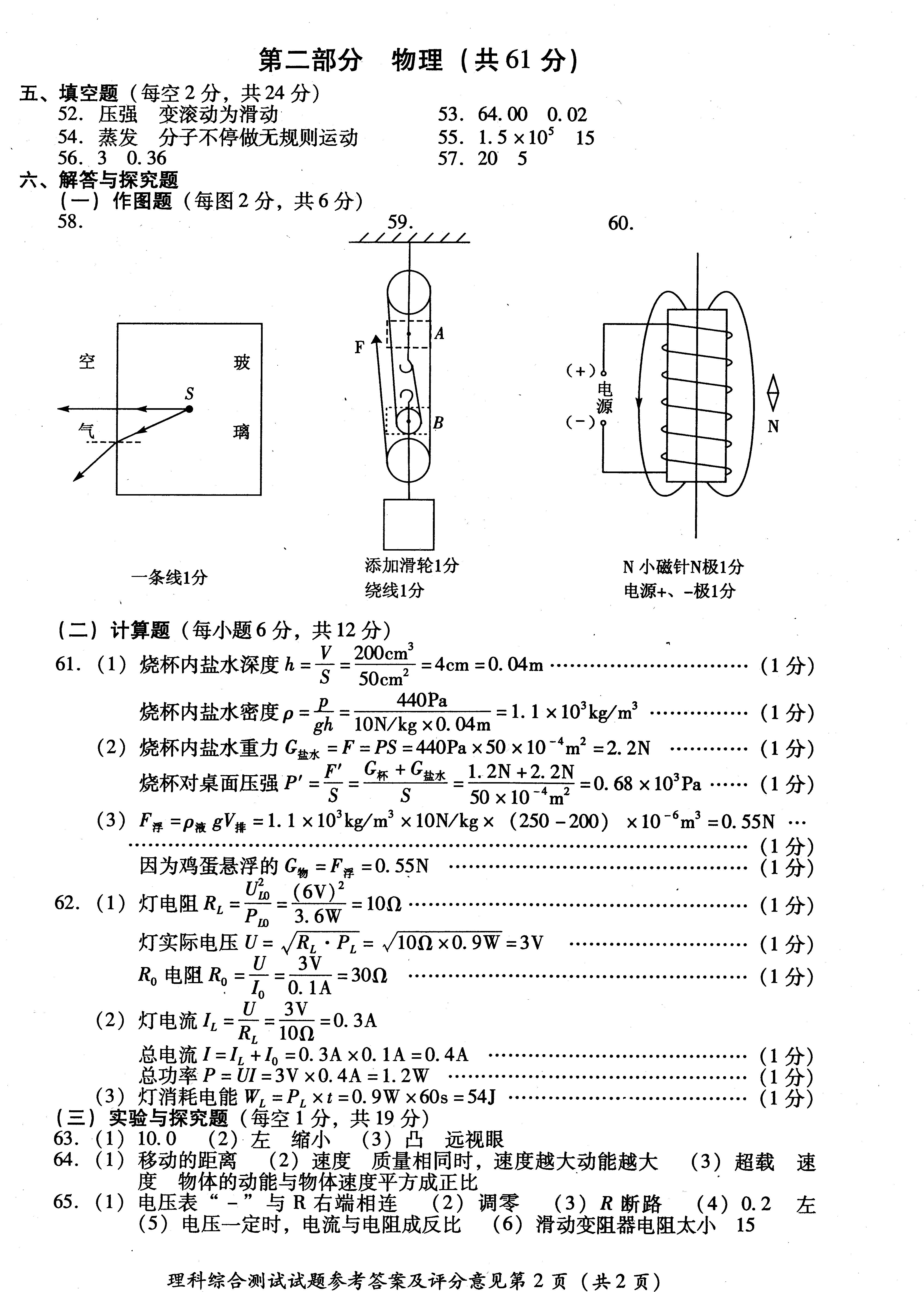 2015年四川眉山中考物理试卷及答案(完整版)