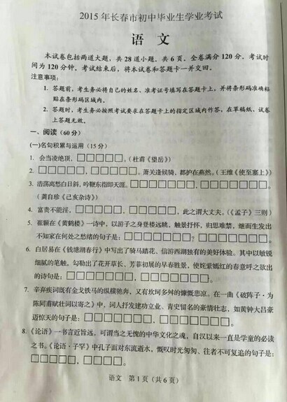 吉林松原中考时间2025年时间表、科目、总分及各科