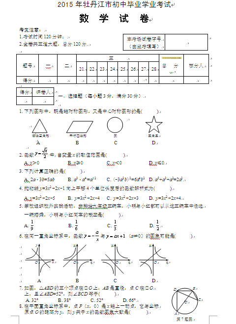2015年黑龙江牡丹江中考数学真题(已公.docx