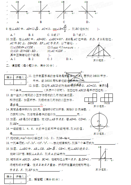 2015年黑龙江牡丹江中考数学真题(已公布)