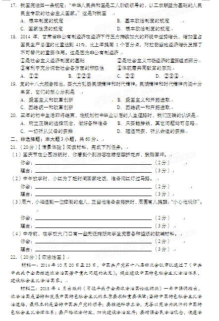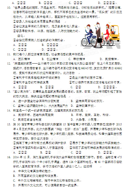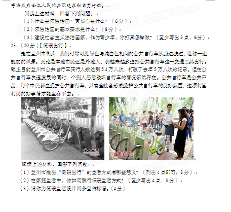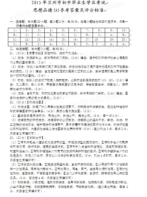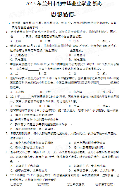 2015年甘肃兰州中考政治试题及答案(已公布)