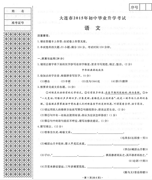 辽宁大连中考时间2025年具体时间表、考试科目、各
