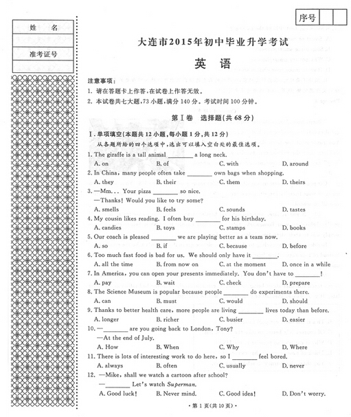 辽宁大连中考时间2025年具体时间表、考试科目、各