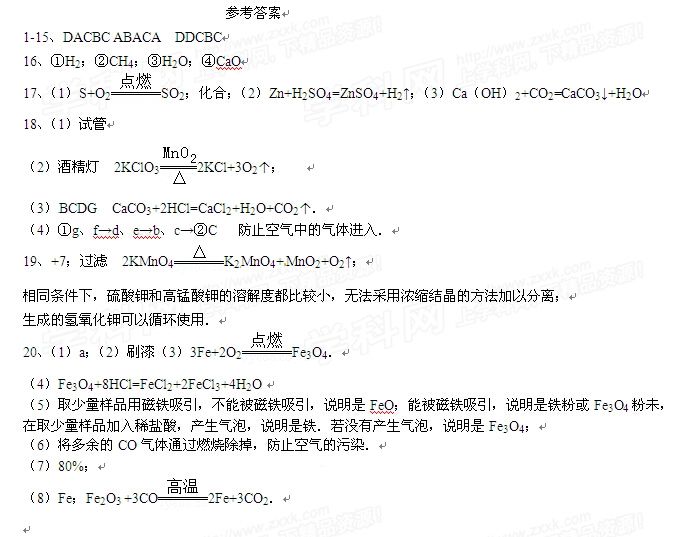 2015年江苏无锡中考化学试卷及答案(完整版)