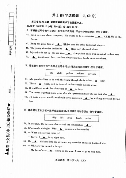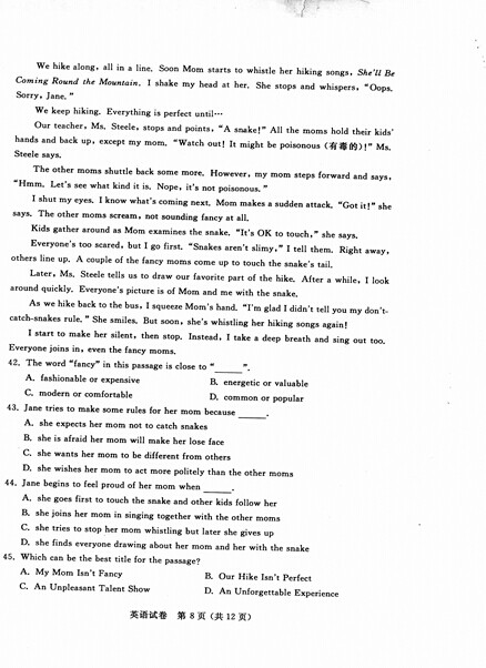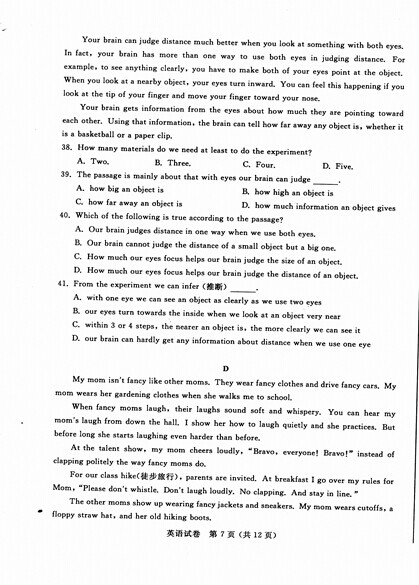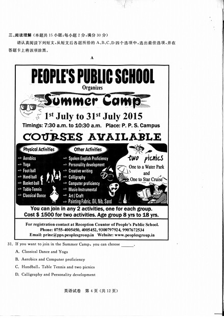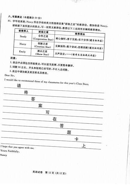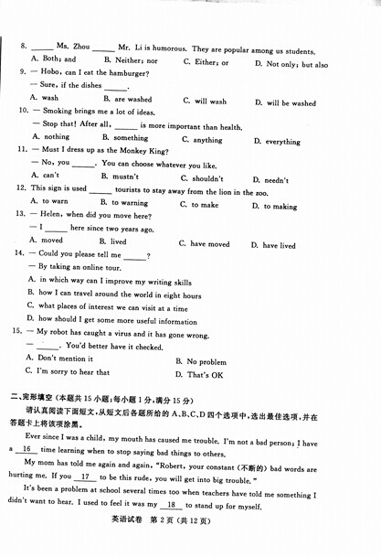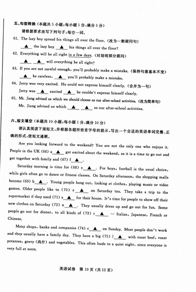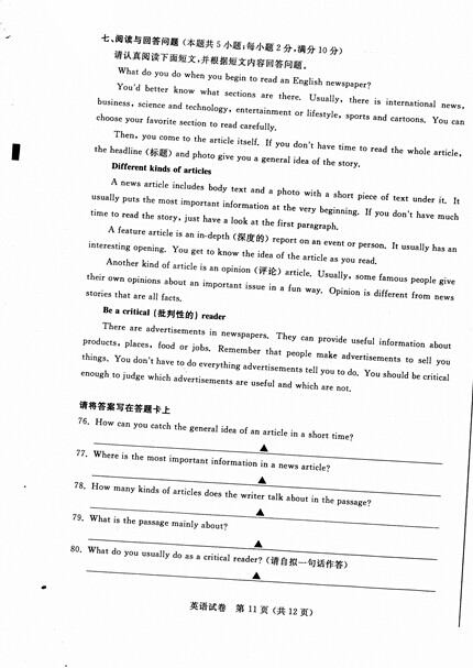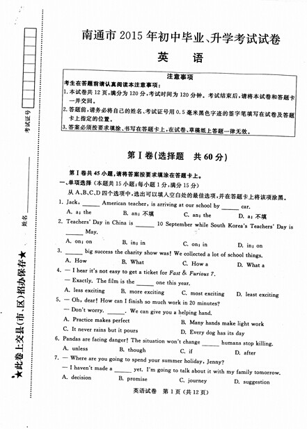 2015年江苏南通中考英语真题(已公布)