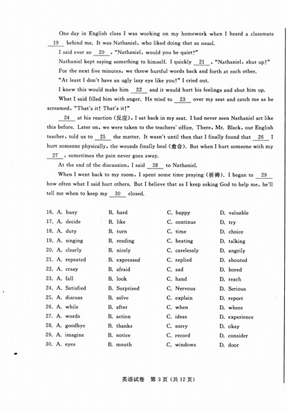 2015年江苏南通中考英语真题(已公布).docx