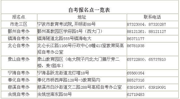 注:鄞州户籍的新老考生请持身份证、户口簿到鄞州自考办报名。