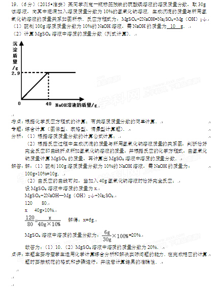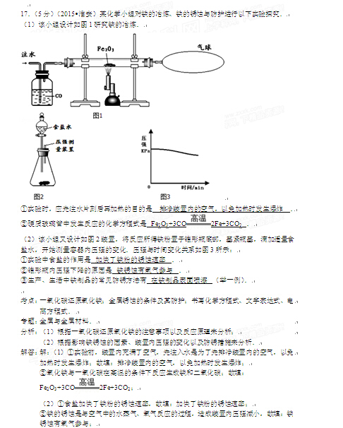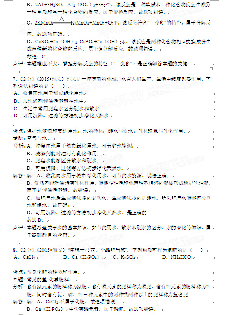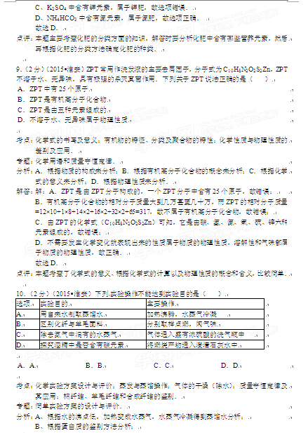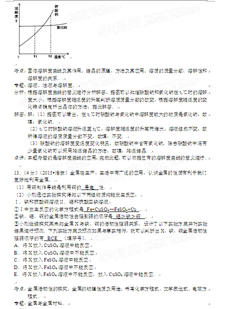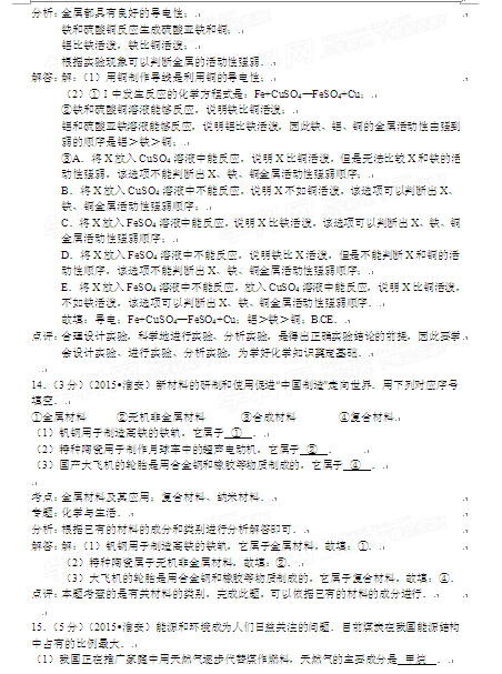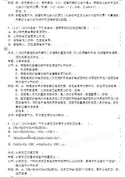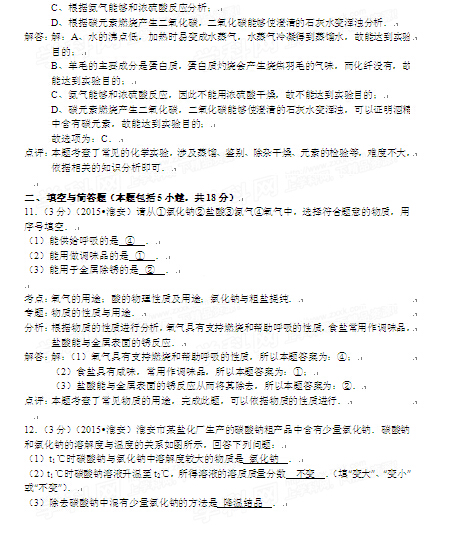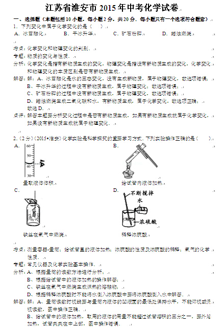 2015年江苏淮安中考化学试卷及答案(完整版)
