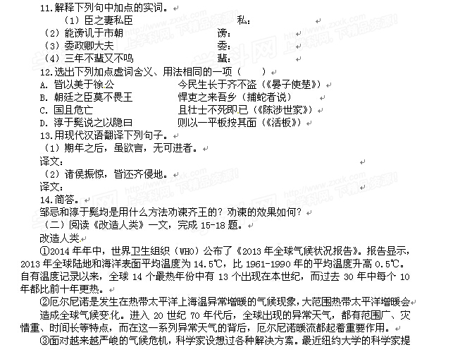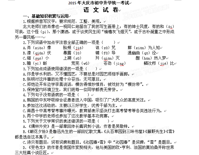 2015年黑龙江大庆中考语文真题(已公布.docx