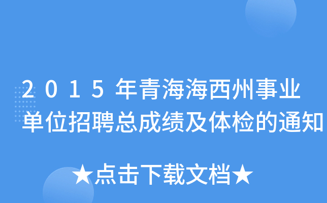 2015年海西州事业单位面向社会公开招聘工作人员考试总成绩公示及体检人员名单