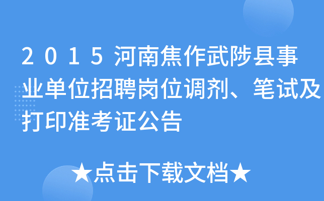 于2015年11月19日8:00至21日9:00登录报名系统按照提示打印《笔试准考证》。逾期未打印者,视为放弃笔试资格。如遇到问题,请及时与武陟县考录工作领导小组办公室联系(电话:0391―7276912)。