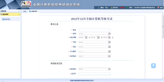 报名及缴费时间为2015年12月23日至2016年1月10日24:00。报名分为网上填报基本信息、信息审核确认、网上缴费三项流程,报名及缴费时间结束,一律不再接收报名及缴费。