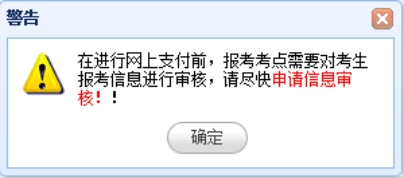 七、照片上传完毕,会弹出如下图所示提示框,提醒考生“申请信息审核”。
