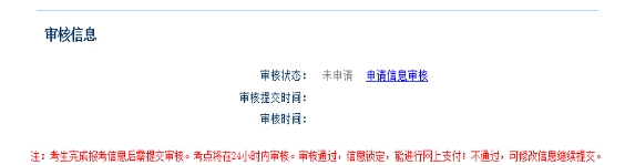 八、考生确认填报信息无误后,点击下图所示的“申请信息审核”按钮,提交审核申请。申请报考信息审核后,除非审核失败,否则信息无法修改。