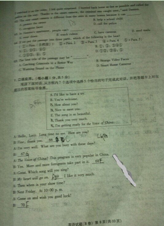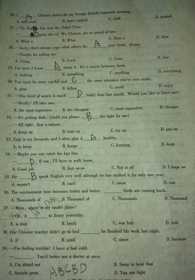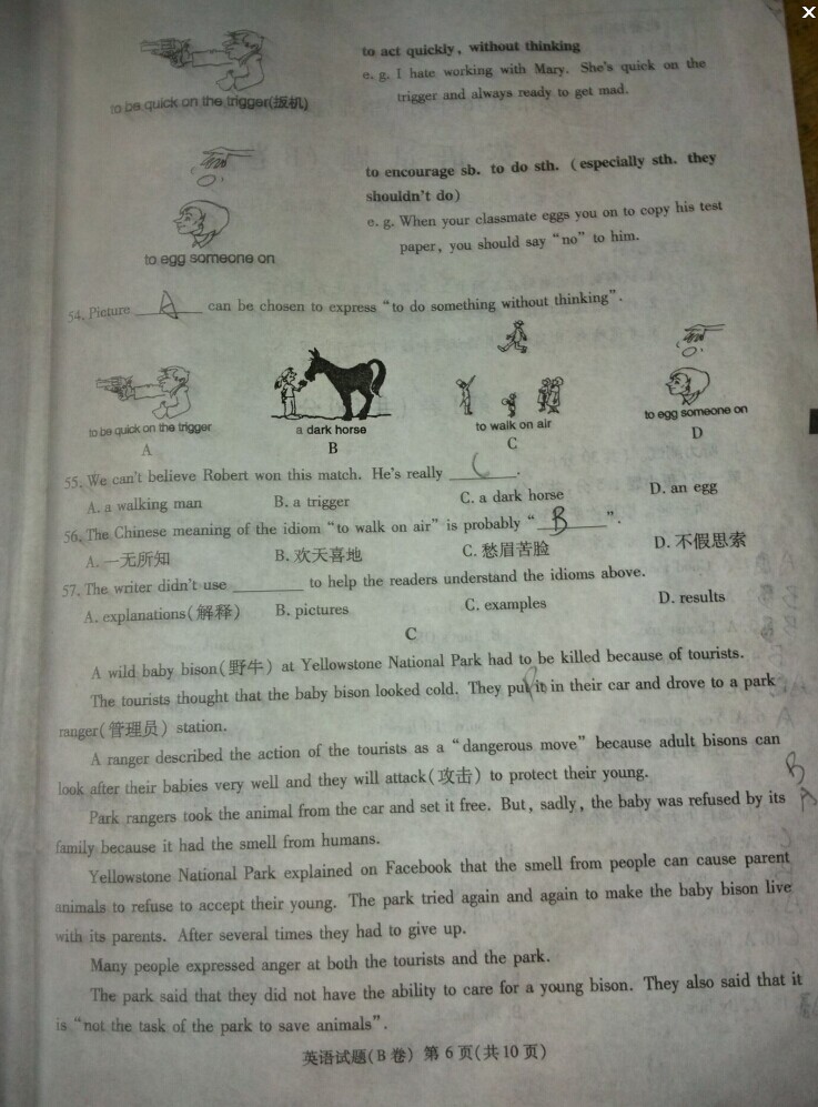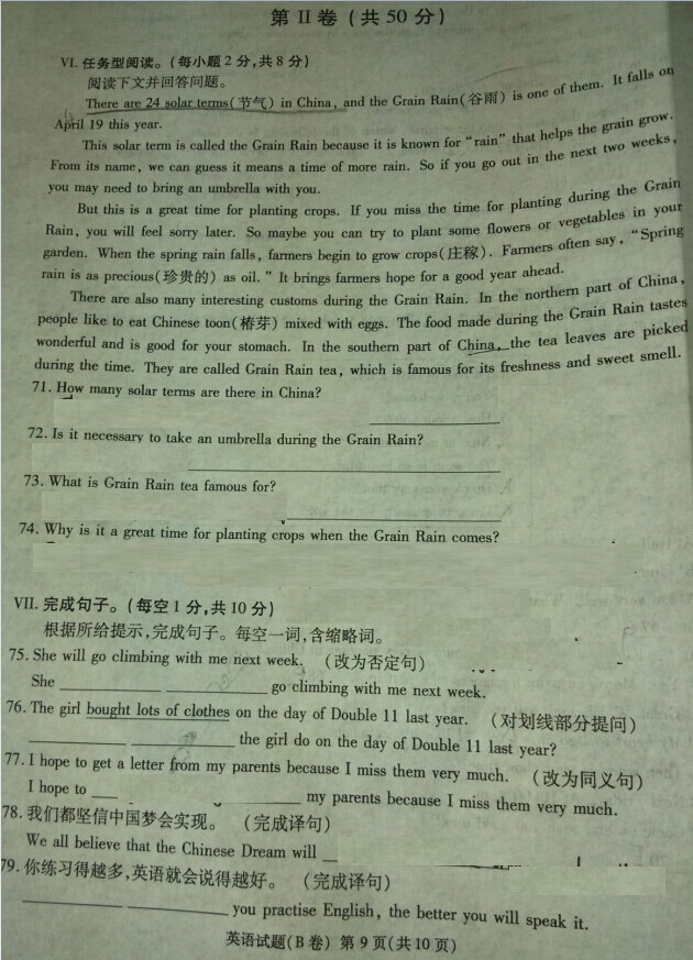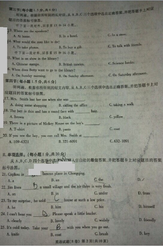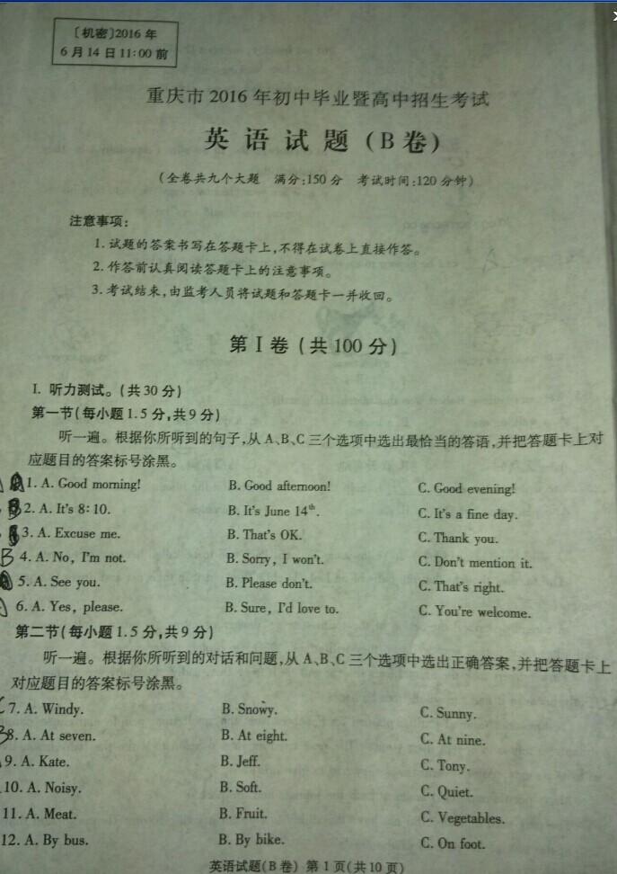 2016年重庆九龙坡中考英语试题B卷(已公布)