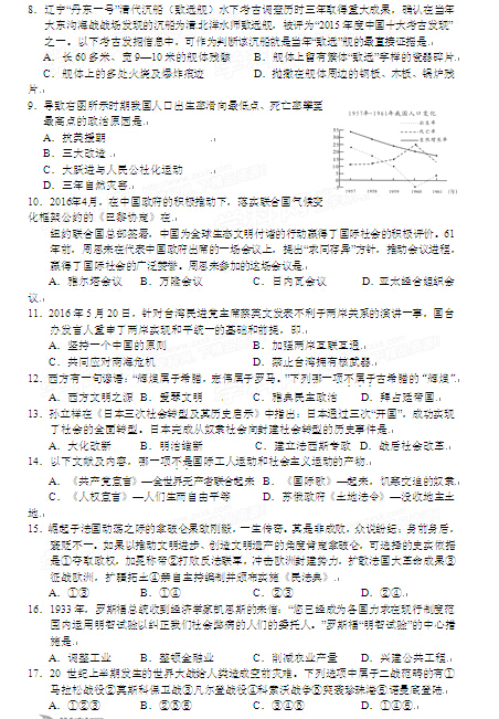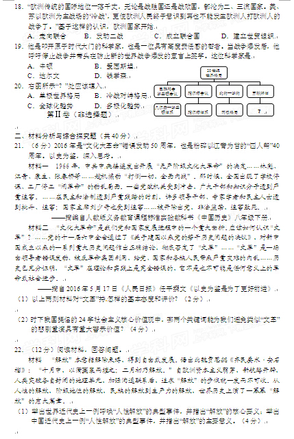 2016年青海西宁中考历史试卷及答案(已公布)