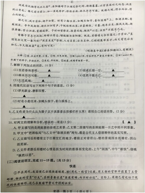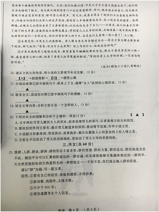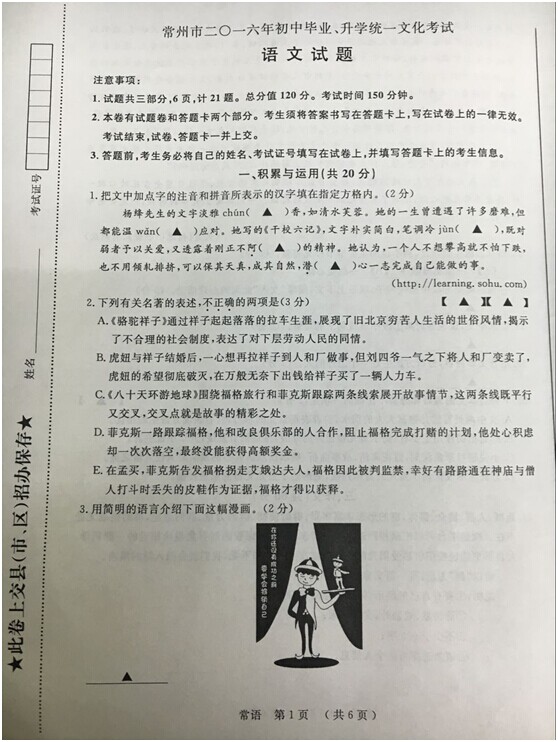 2016年江苏常州中考语文试题(已公布)