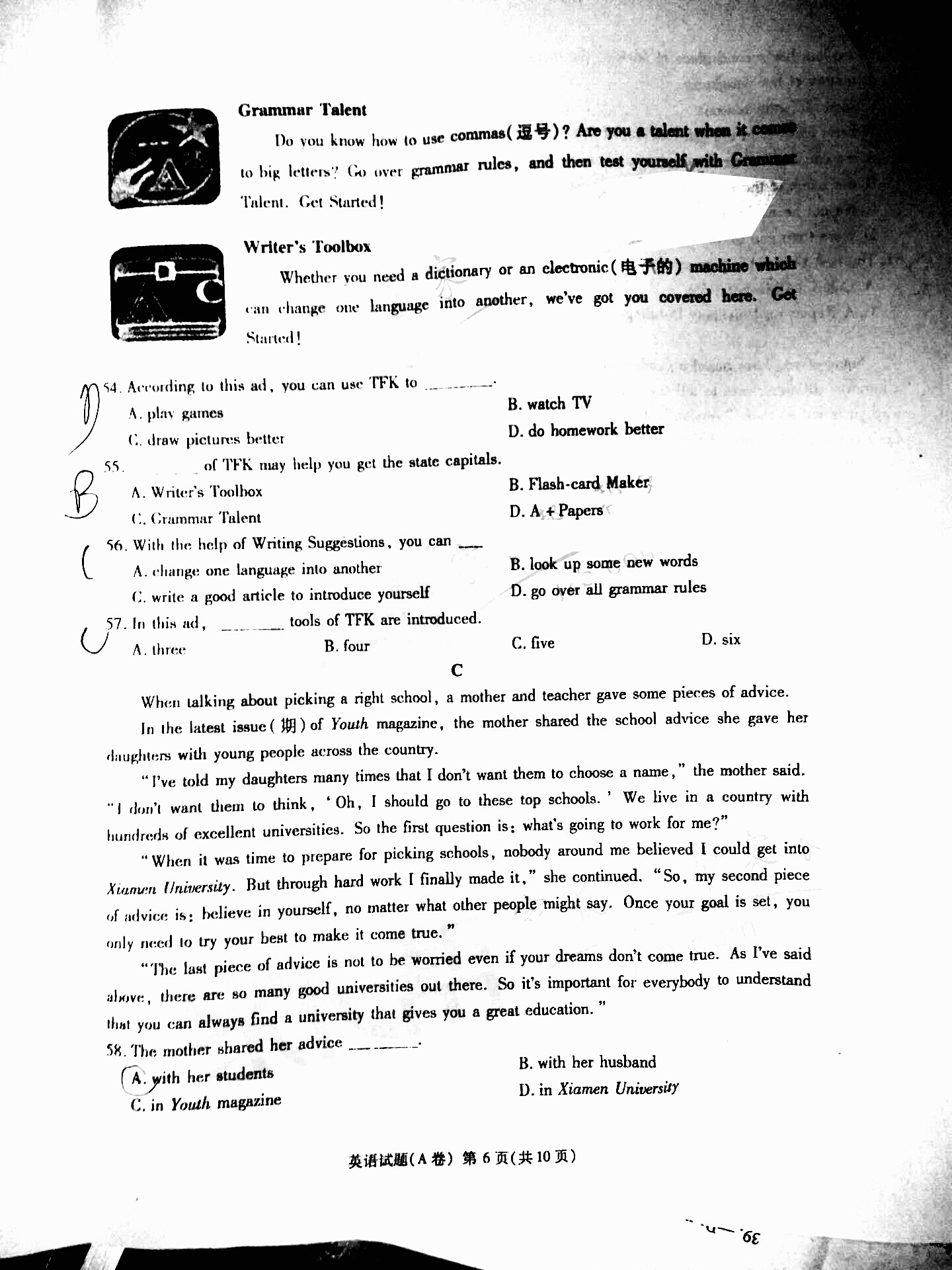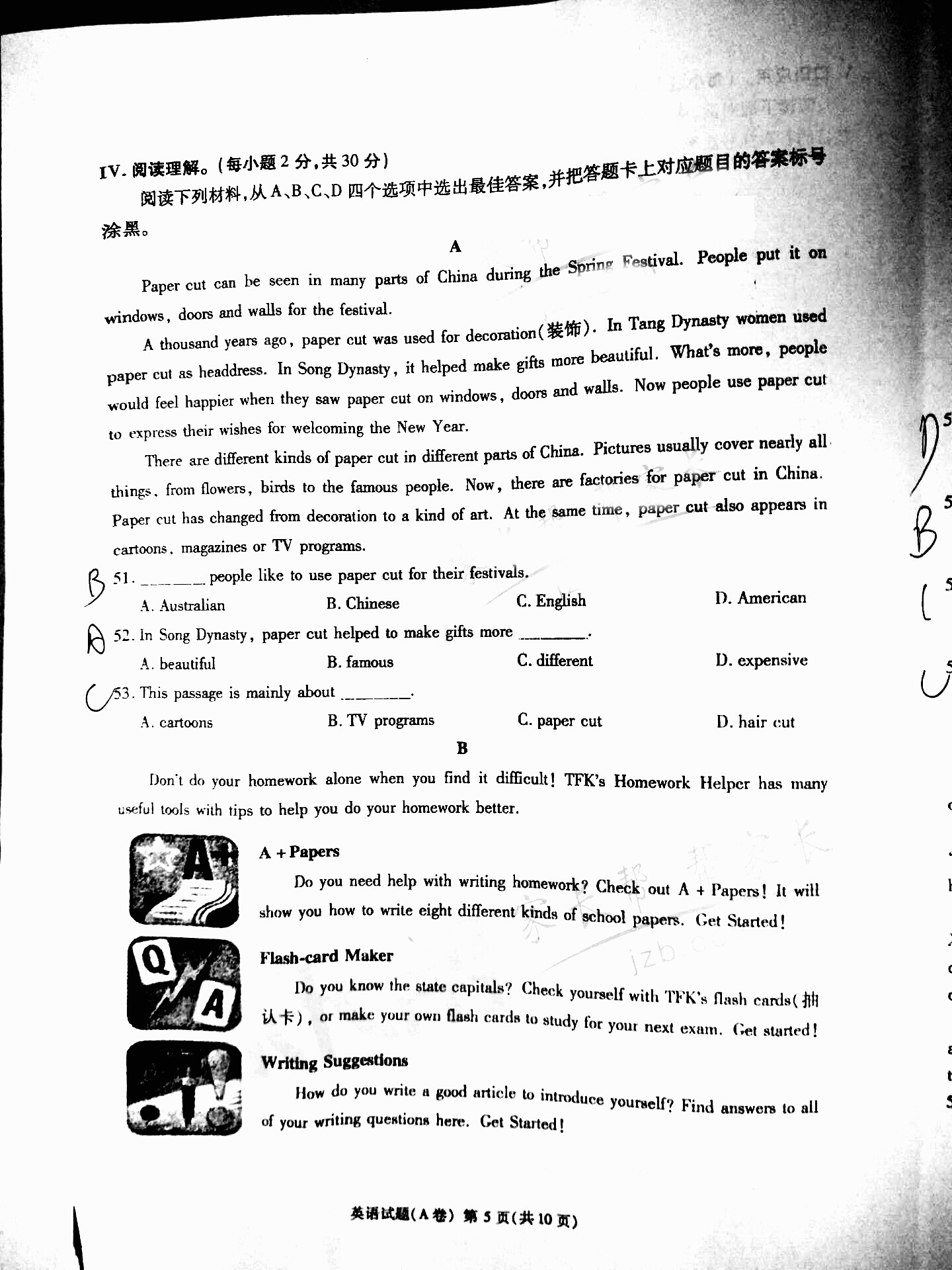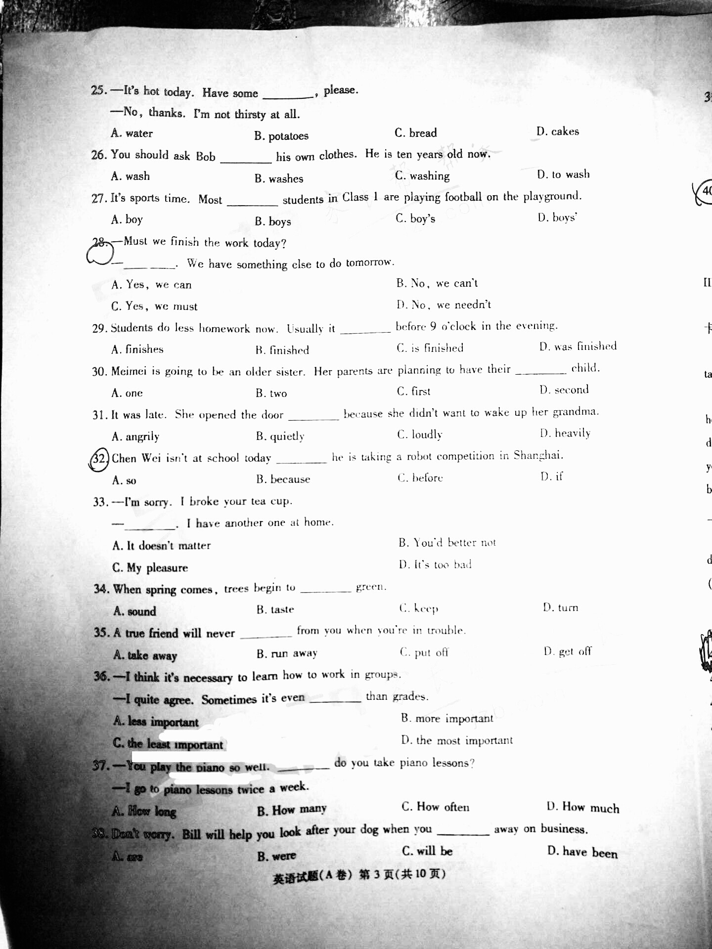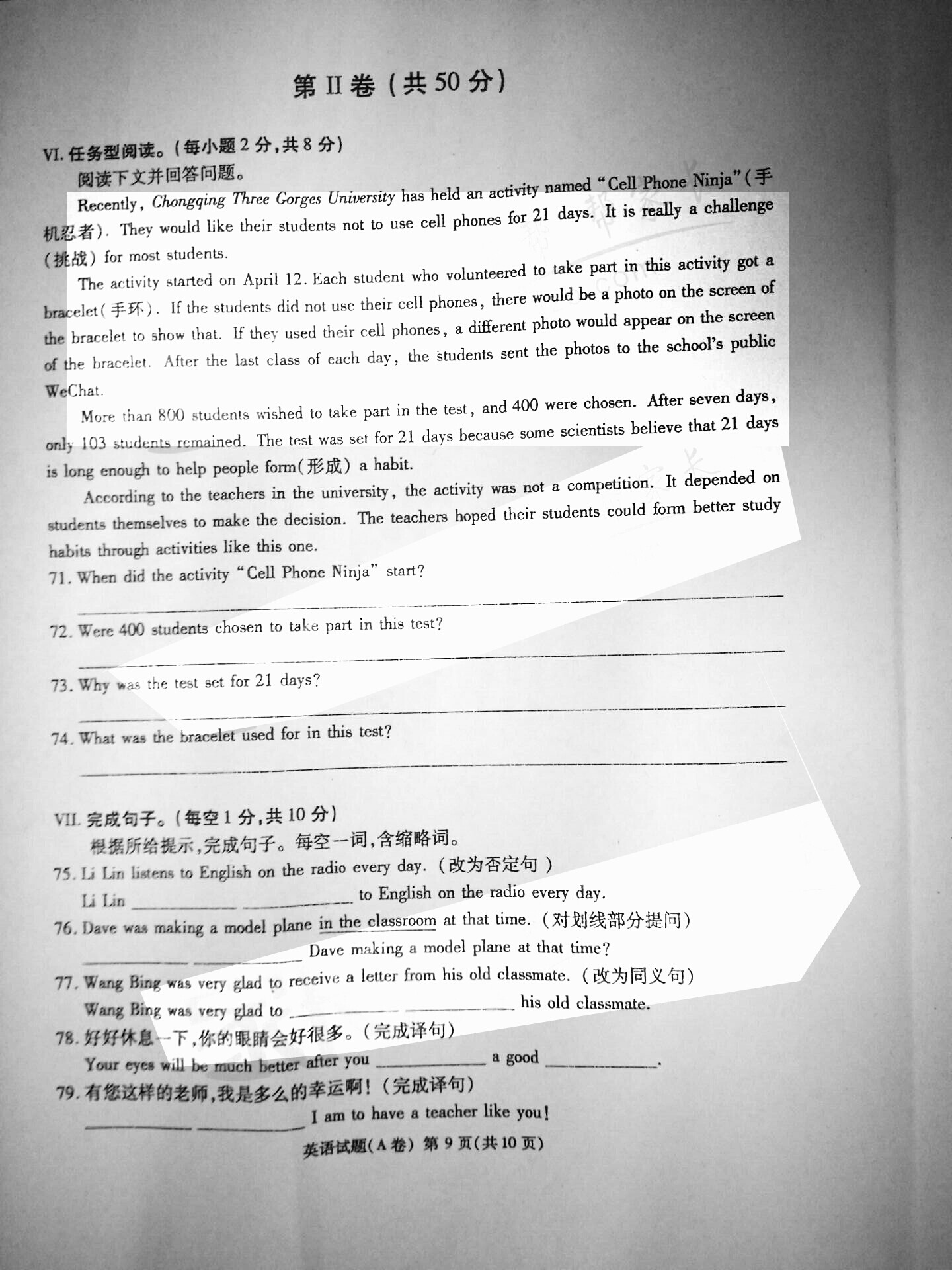 2016年重庆永川中考英语试卷及答案A卷(已公布)
