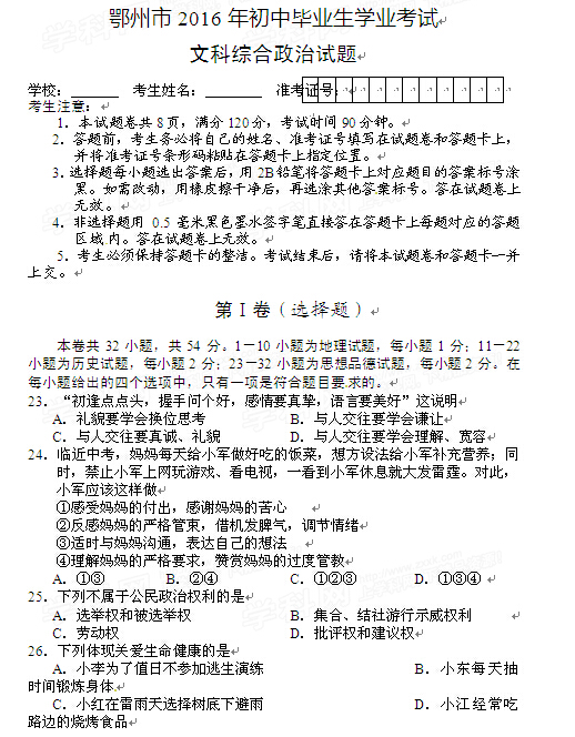2025年湖北鄂州中考时间6月20日至22日 全市设13个考点 390个考场