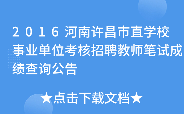 原标题:许昌市2016年市直学校、事业单位公开招聘教师及工作人员笔试成绩查询公告