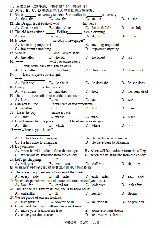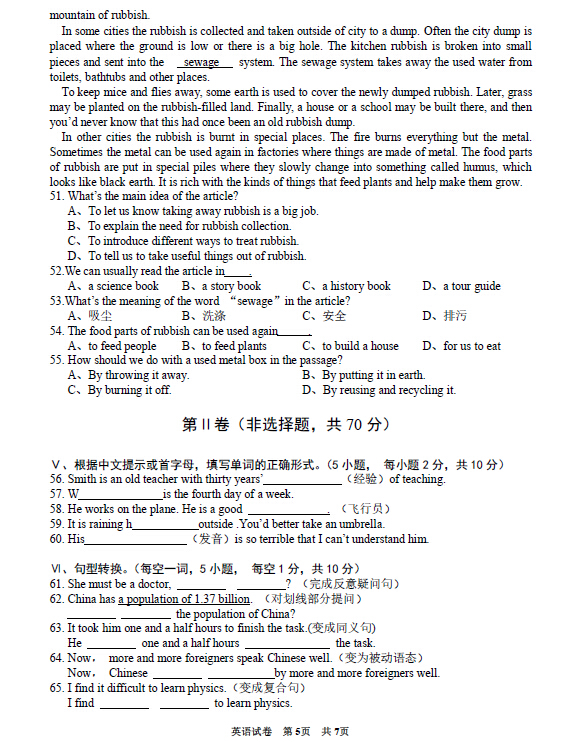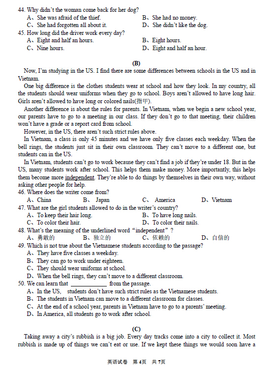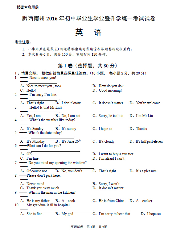 2016年贵州黔西南中考英语试卷及答案(已公布)