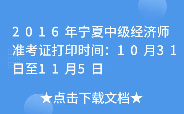 2016年宁夏中级经济师准考证打印时间:10月31日至11月