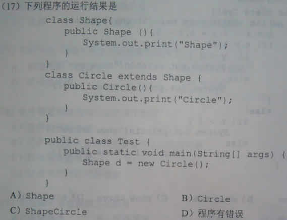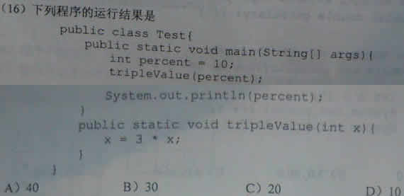 2012年9月计算机二级考试JAVA部分选择真题
