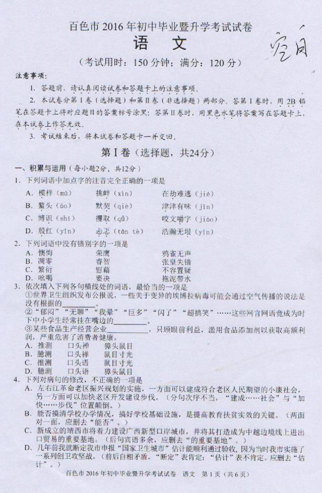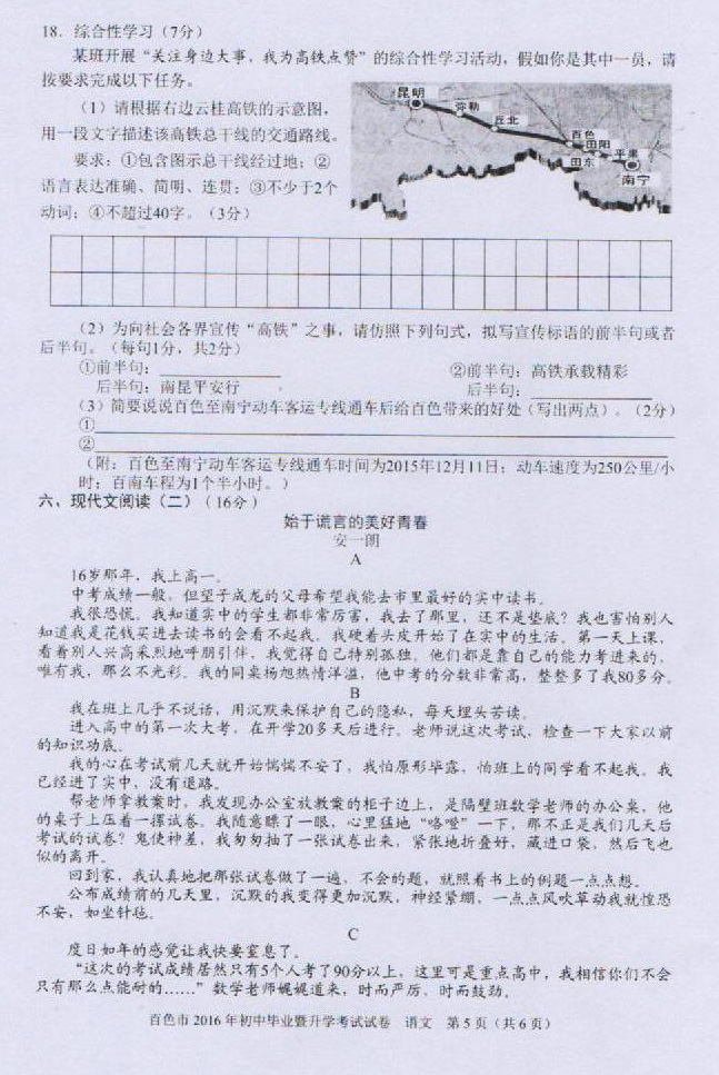 2025年广西南宁中考时间及各科目总分满分公布(6
