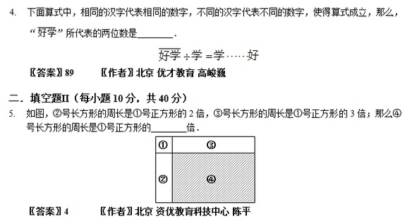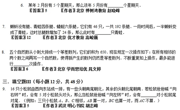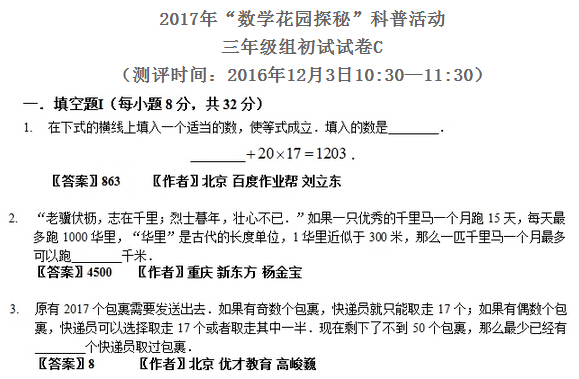 2017年数学花园探秘初赛迎春杯试题C卷(三年级)
