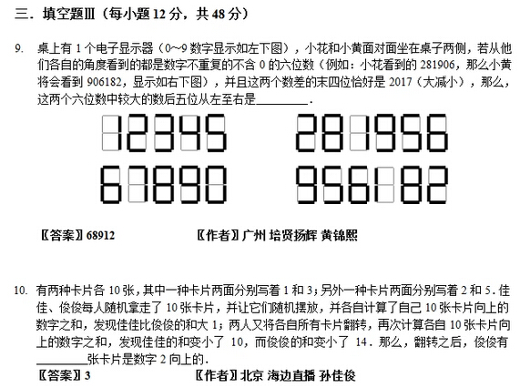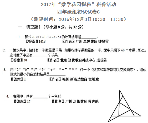 2017年数学花园探秘初赛迎春杯试题C卷(四年级)