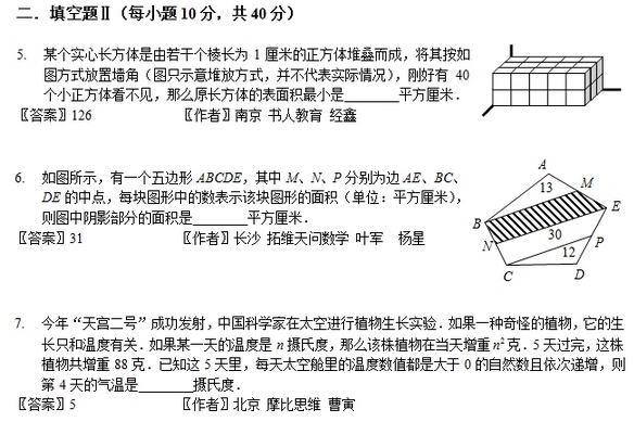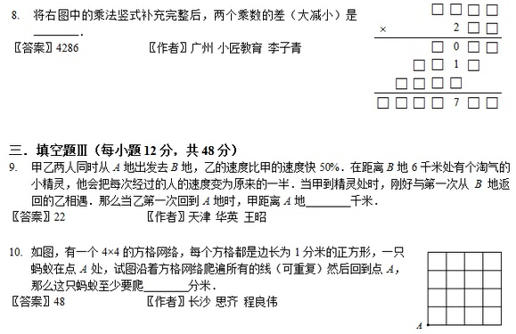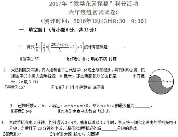 2017年数学花园探秘初赛迎春杯试题C卷(六年级)