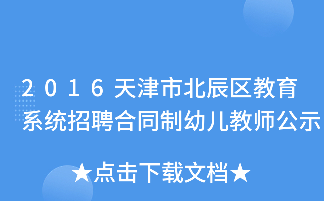 原标题:2016年天津市北辰区教育系统公开招聘合同制幼儿教师公示