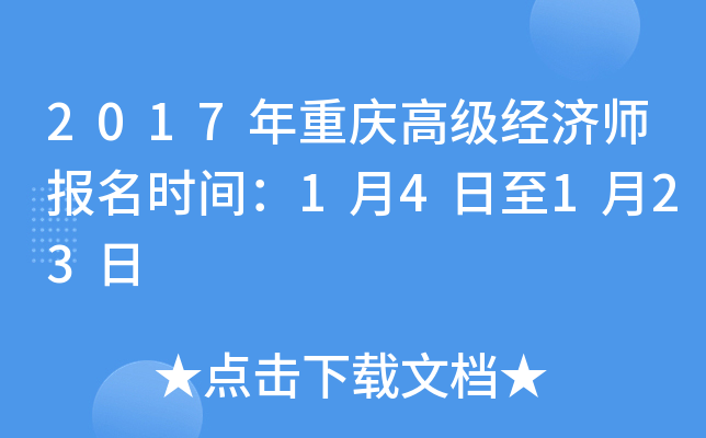 2017年重庆高级经济师考试报名时间为2017年1月4日─1月23日。