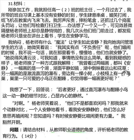 问题:请结合材料,从教育观的角度,评析李老师的教育行为。(14分)