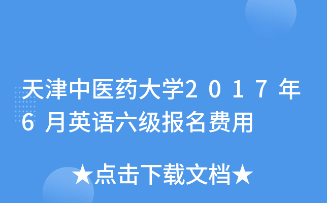 》得知,天津中医药大学2017年6月英语六级报名费用如下: