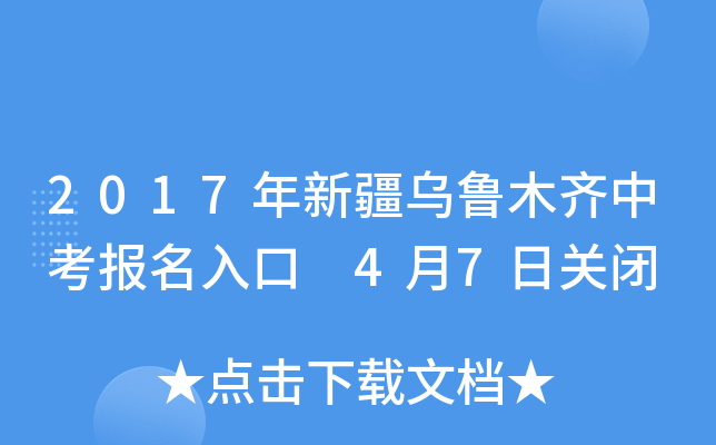 乌鲁木齐市2017年中考报名3月28日开始,4月7日结束。